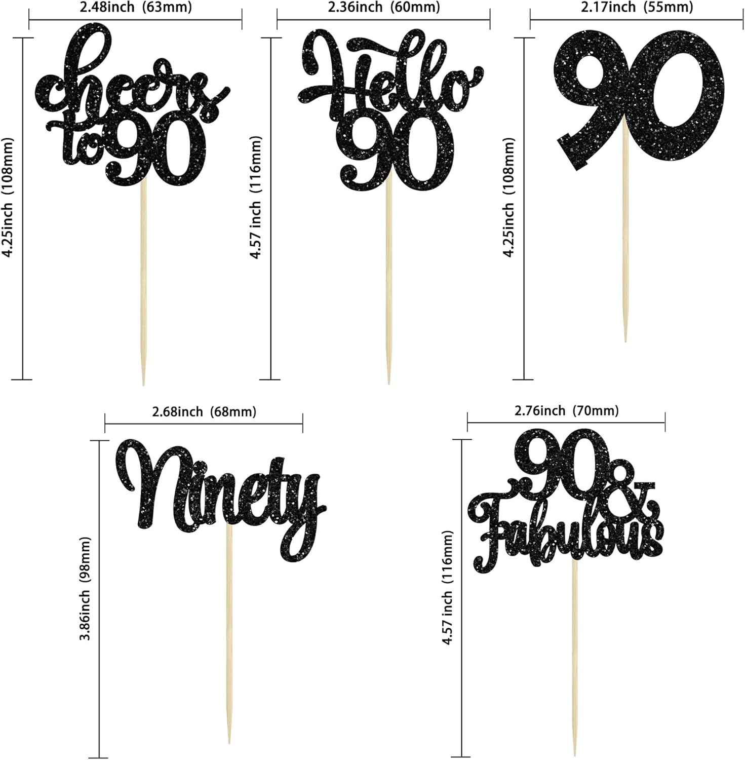 Gyufise 30Pcs Happy 90th Birthday Cupcake Toppers Black Glitter Ninety Cheers to 90 Years Old Birthday Cupcake Picks for Happy 90th Birthday Anniversary Party Cake Decorations