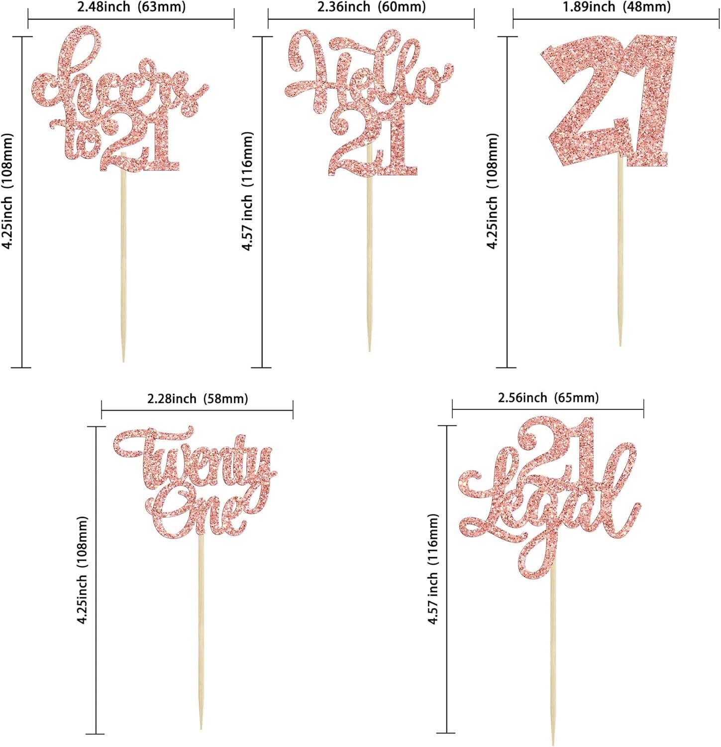 30pcs 21st Birthday Cupcake Toppers - Legal 21st Cupcake Picks - Cheers to 21 Years Old Cake Decorations - Rose Gold Glitter