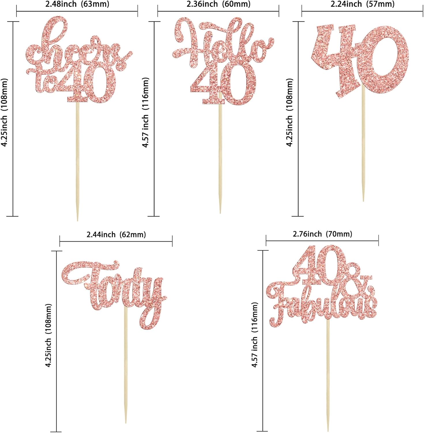 • -Package included: 24Pcs Happy 40th Birthday Cupcake Toppers. Comes with assembled, so you can insert into your cake directly, which make your cake more interesting.