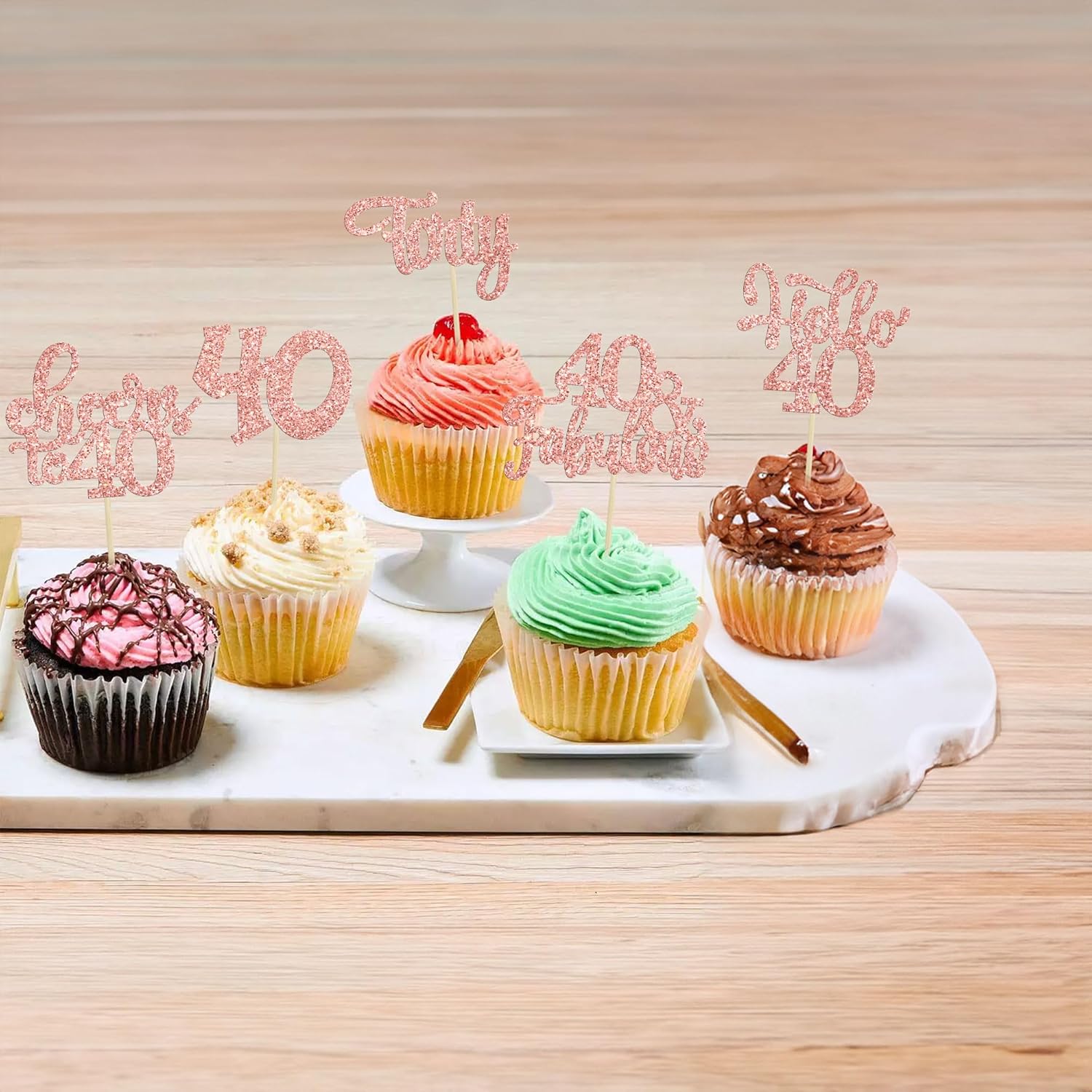 • -These Happy 40th Birthday Cupcake Toppers are so cute and good for happy 40th birthday theme party, cheers to 40 years theme party, 40 fabulous theme party, happy 40th birthday anniversary theme party cake decorations. They can make your cupcake more attractive and bring the fun to your party. You can also apply them for ice cream, fruits, cookies and other desserts.