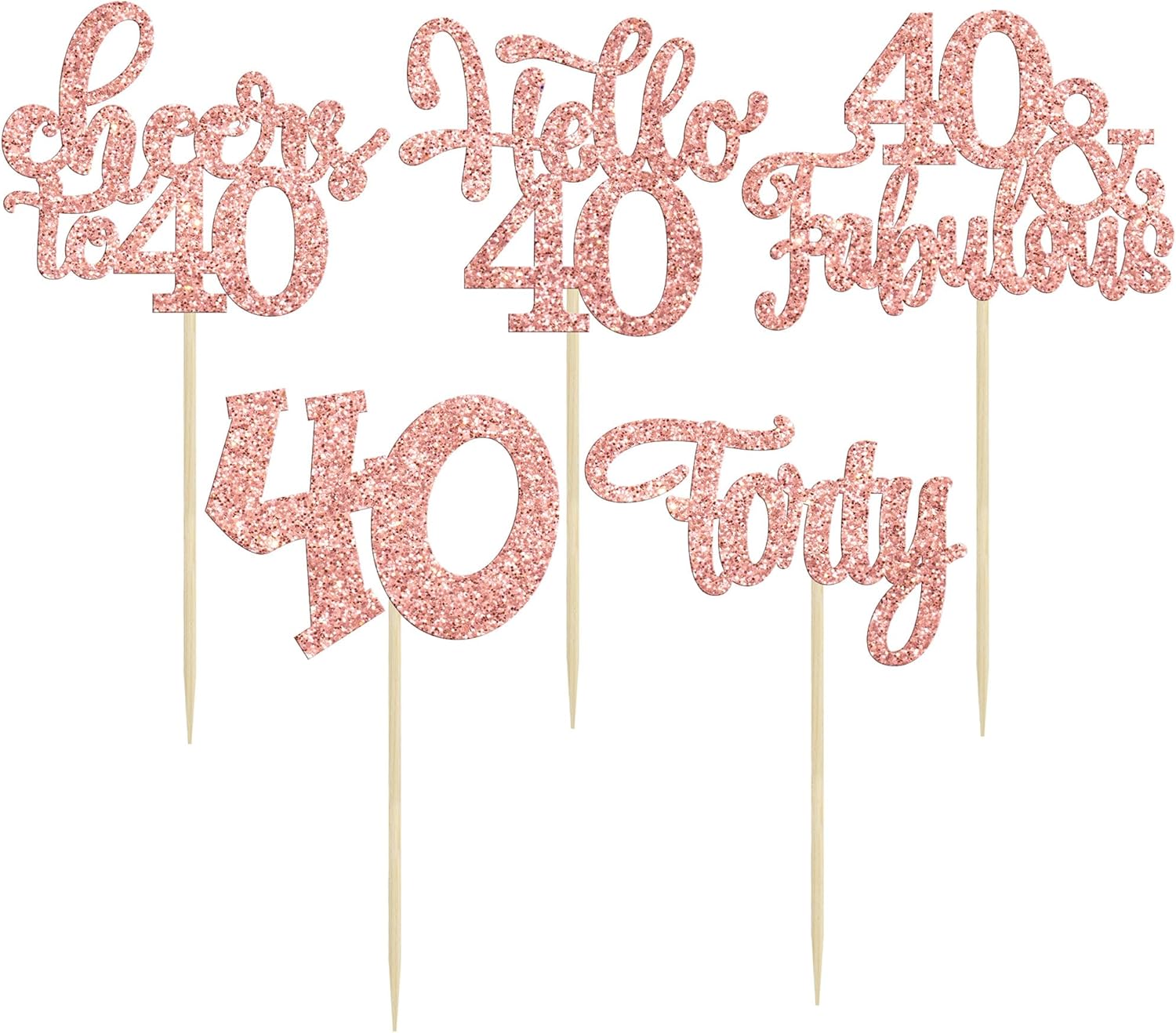 Gyufise 30Pcs Happy 40th Birthday Cupcake Toppers Rose Gold Glitter Forty Cheers to 40 Years Old Birthday Cupcake Picks for Happy 40th Birthday Anniversary Party Cake Decorations
