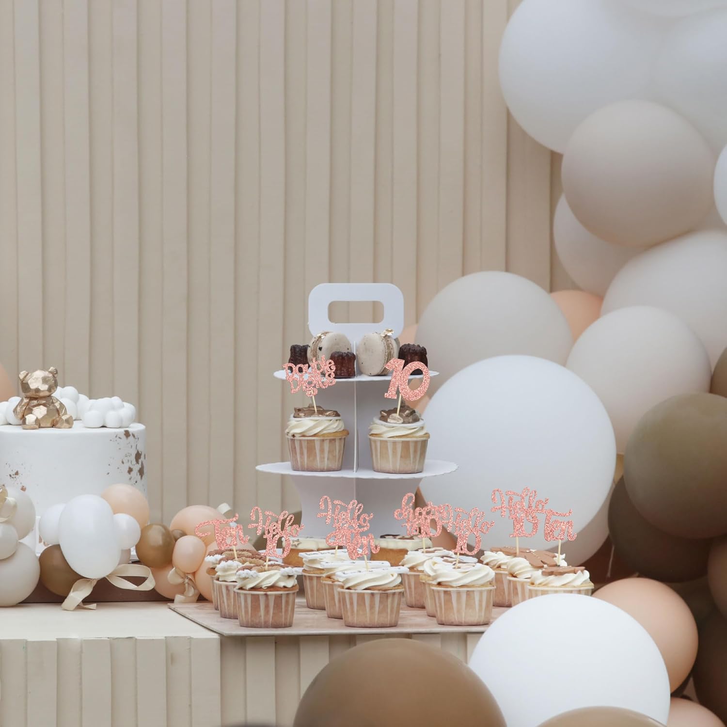 30Pcs 10th Birthday Cupcake Toppers Ten Double Hello 10 Cupcake Picks Cheers to 10 Years Old Cake Decorations for 10th Birthday Party Supplies Rose Gold Glitter