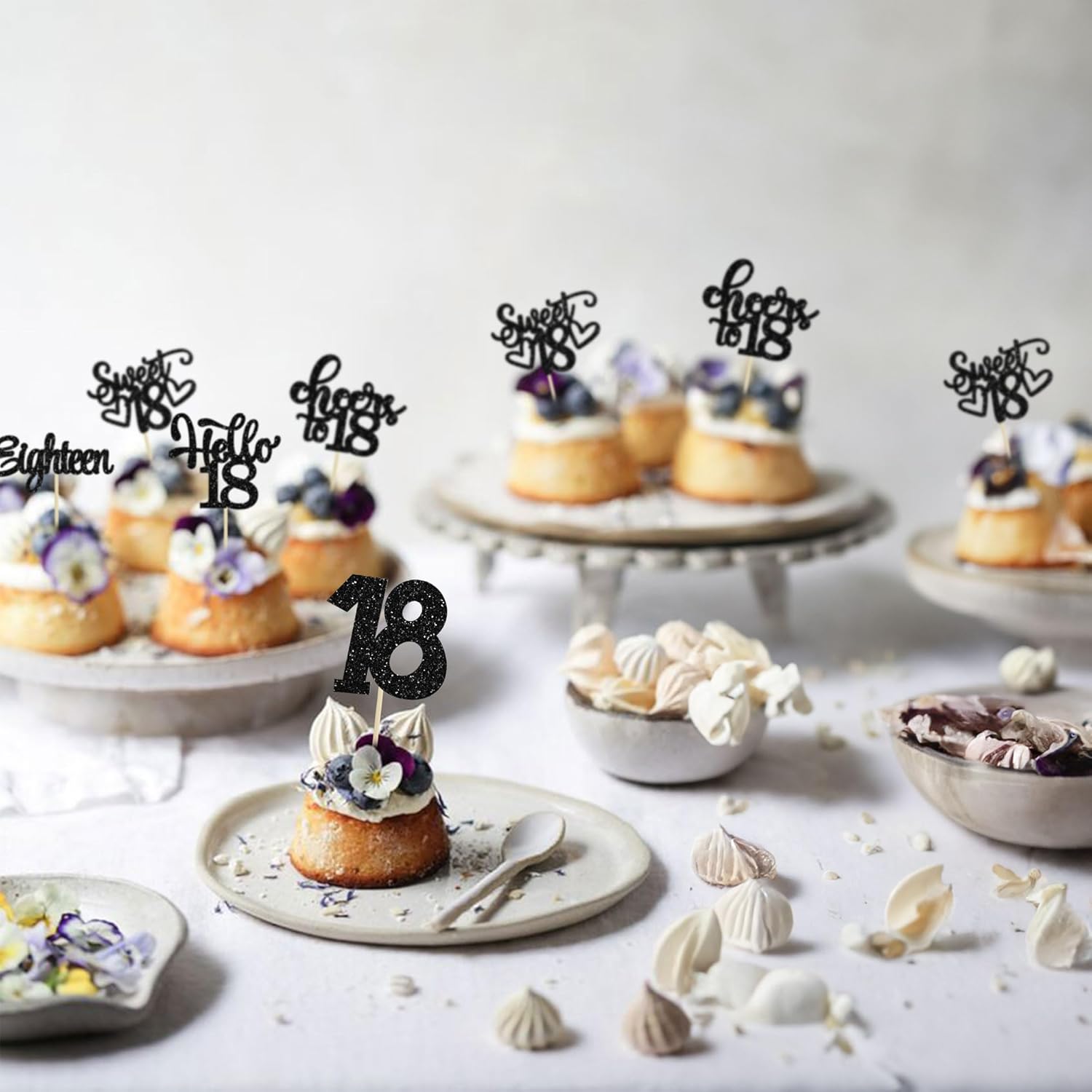 • -These Happy 18th Birthday Cupcake Toppers are so cute and good for happy 18th birthday theme party, cheers to 18 years theme party, 18 fabulous theme party, happy 18th birthday anniversary theme party cake decorations. They can make your cupcake more attractive and bring the fun to your party. You can also apply them for ice cream, fruits, cookies and other desserts.