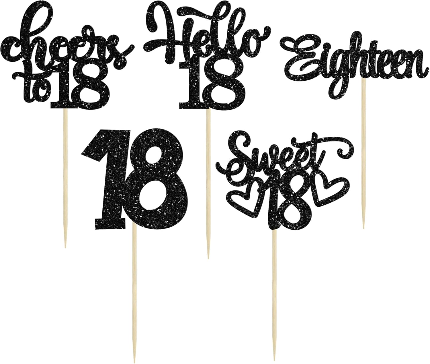 30Pcs18th Birthday Cupcake Toppers Eighteen Happy 18th Cupcake Picks Sweet 18 Cheers to 18 Cake Decorations for 18th Birthday Anniversary Party Supplies Black Glitter