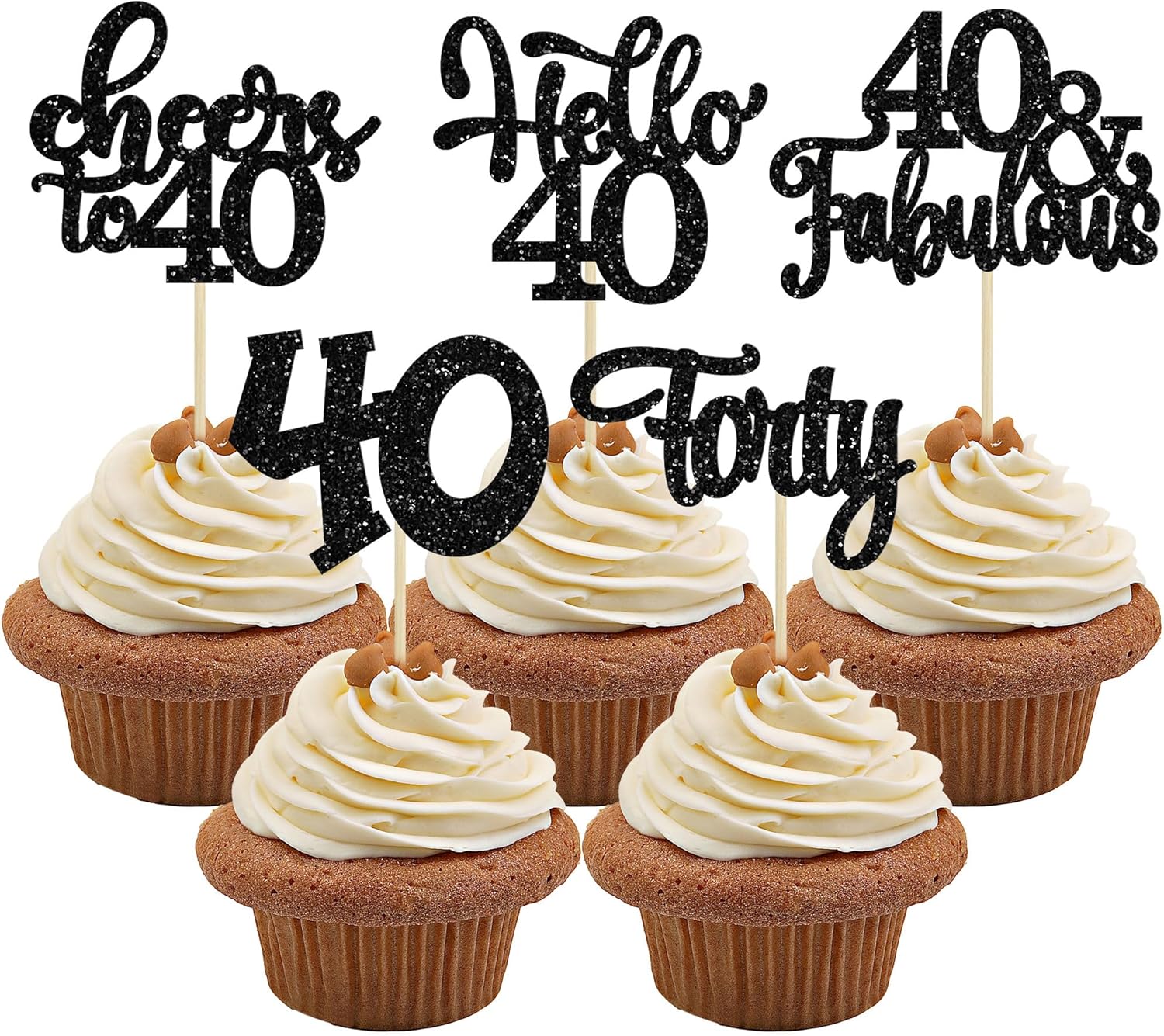 • -These Happy 40th Birthday Cupcake Toppers are so cute and good for happy 40th birthday theme party, cheers to 40 years theme party, 40 fabulous theme party, happy 40th birthday anniversary theme party cake decorations. They can make your cupcake more attractive and bring the fun to your party. You can also apply them for ice cream, fruits, cookies and other desserts.