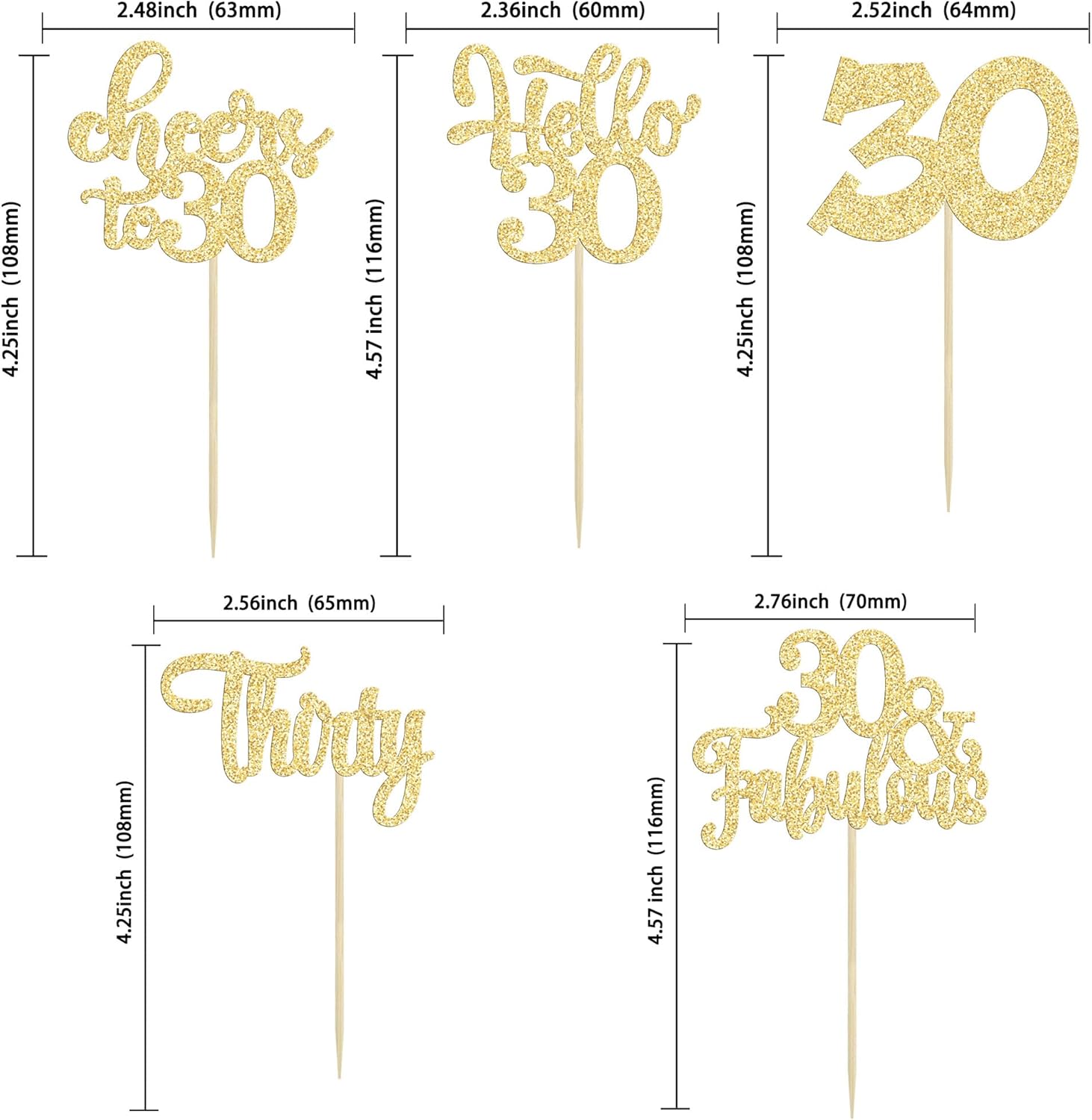 30Pcs Happy 30th Birthday Cupcake Toppers Gold Glitter Thirty Cheers to 30 Birthday Cupcake Picks for Happy 30th Birthday Anniversary Party Cake Decorations Supplies