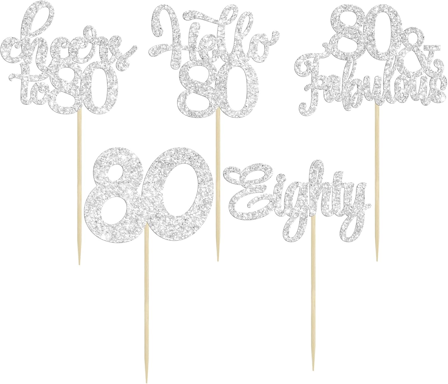 30Pcs Happy 80th Birthday Cupcake Toppers Eighty Cheers to 80 Years Old Birthday Cupcake Picks for Happy 80th Birthday Anniversary Party Cake Decorations Silver Glitter