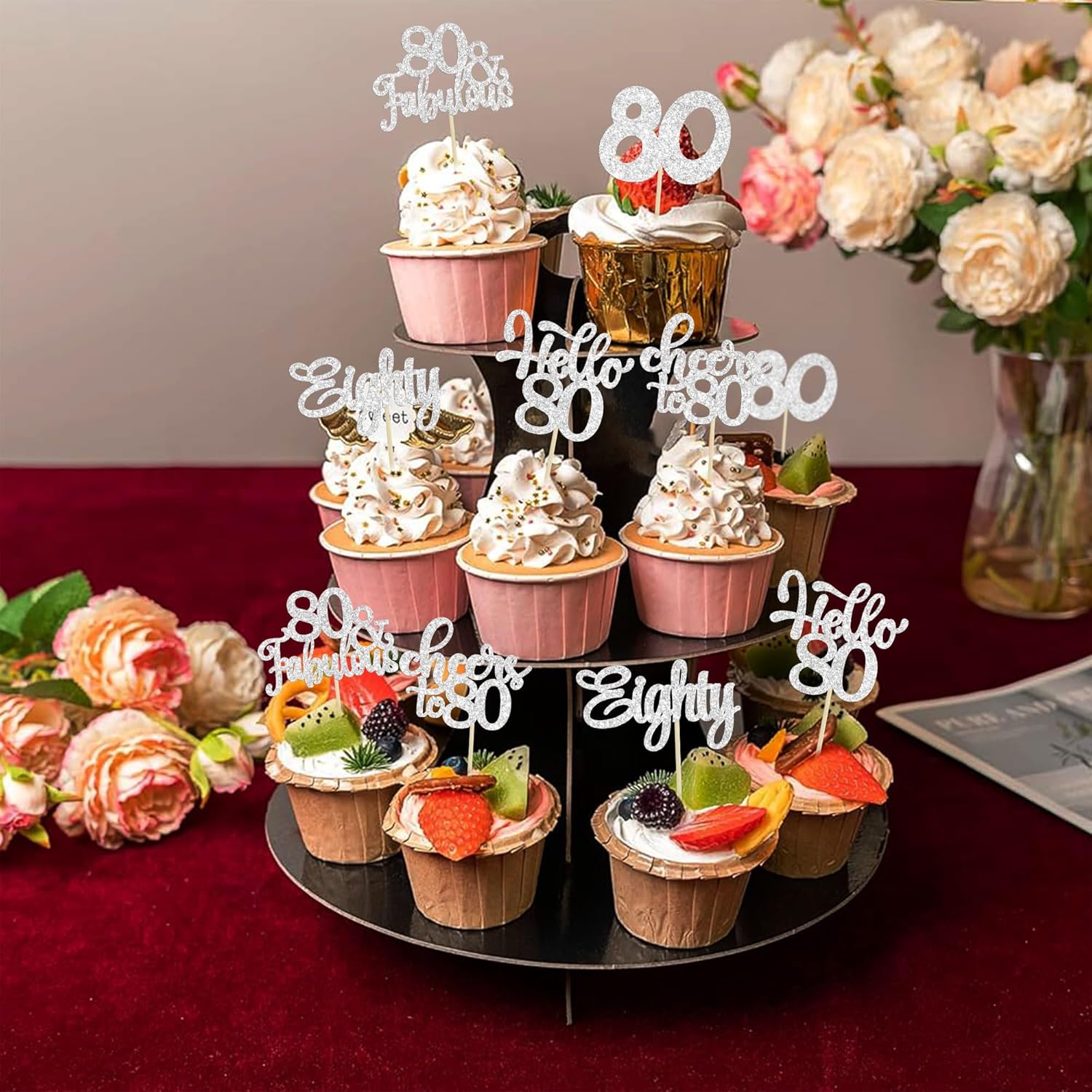 • -These Happy 80th Birthday Cupcake Toppers are so cute and good for happy 80th birthday theme party, cheers to 80 years theme party, 80 fabulous theme party, happy 80th birthday anniversary theme party cake decorations. They can make your cupcake more attractive and bring the fun to your party. You can also apply them for ice cream, fruits, cookies and other desserts.