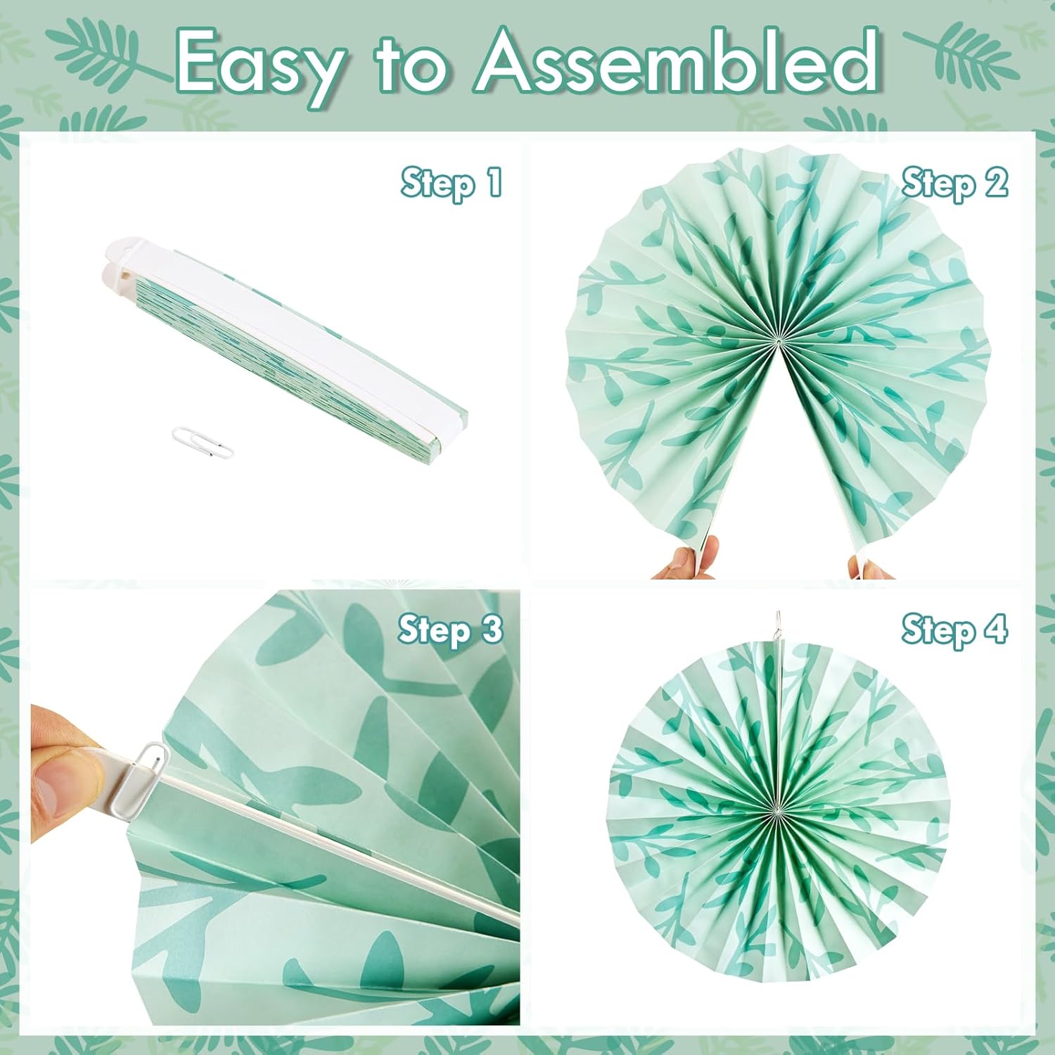 • Elegant and Sophisticated: These Leaves Sage Green Paper Fans Decorations feature a beautiful sage green color and delicate leaf designs, adding an elegant and sophisticated touch to any event.