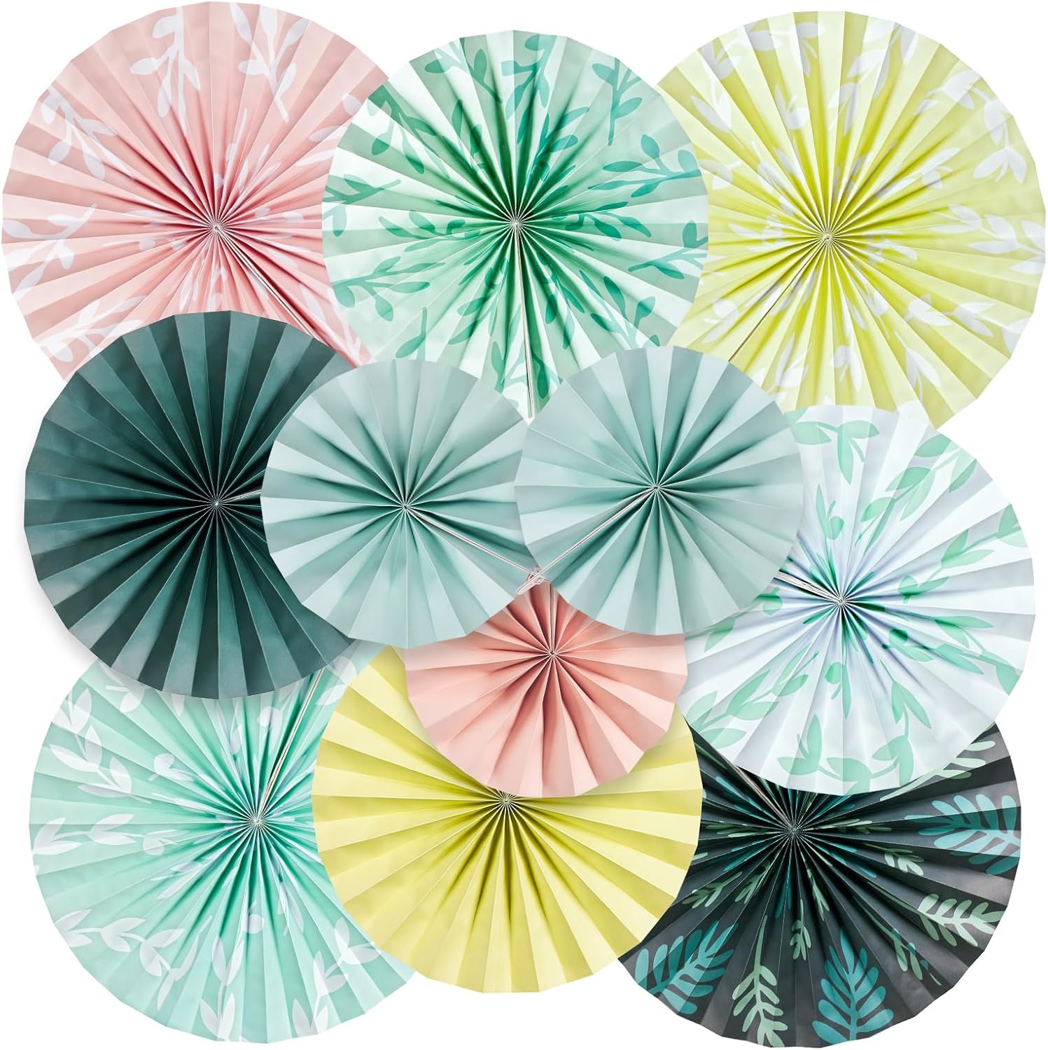 SUNBEAUTY 11 Pcs Sage Green Paper Fans Decoration Ceiling Decor Leaves Paper Fans Decoration Boho Classroom Decor Hanging Paper Fans Decor for Wedding Bridal Birthday Baby Shower