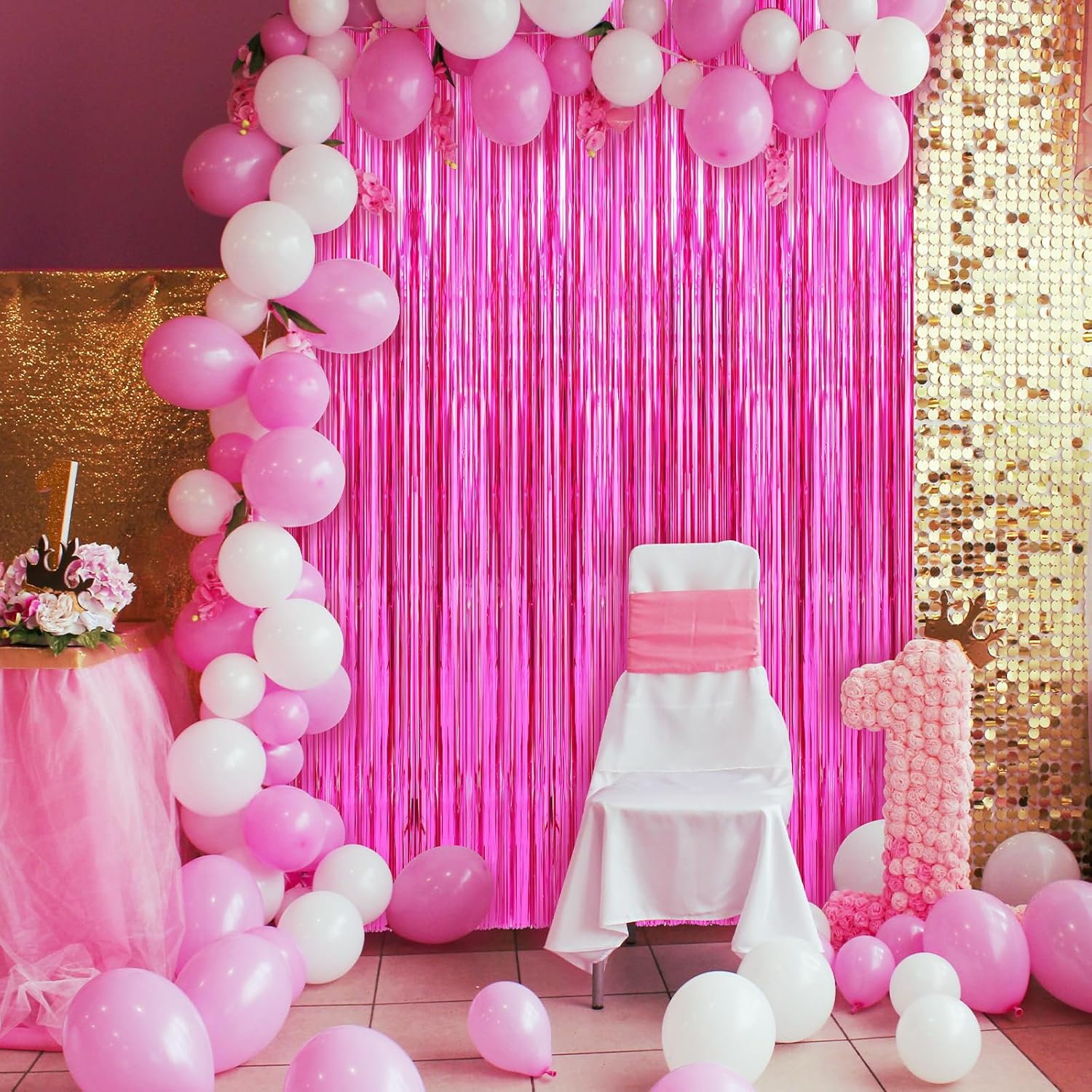 2 Pack Hot Pink Foil Fringe Curtains Streamers Party Decorations 3.3 x 8.2 ft, Tinsel Curtain Fringe Backdrop for Parties, Door Fringe Birthday Streamers, Photo Booth Backdrops, Party Decor