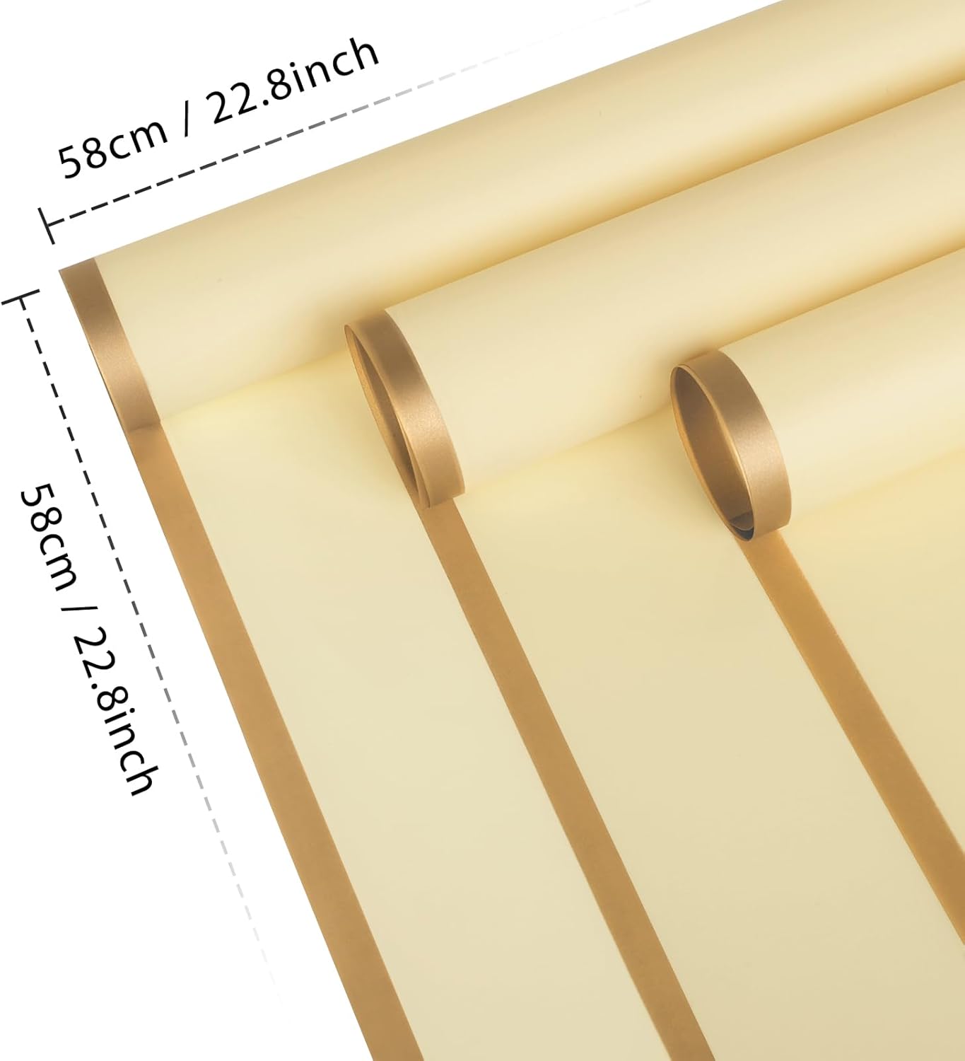 • 【Elegant Design】The florist paper is designed with gold edges, features glossy and vibrant colors, smooth and comfortable to touch. The lightweight and sturdy nature of the paper ensures a professional and exquisite appearance,Is the perfect choice for bouquet packaging and gift box packaging
