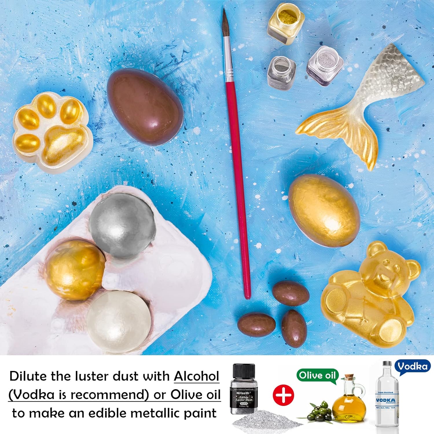 • 🌟【Easy to Use】Specially developed for food decoration and craft industries, this luster dust produces realistic looks by highly pigmented colors with a metallic finish. The pretty fine grain is more convenient for painting. To add glimmer and sparkle to your creations, simply sprinkle or dry brush the luster glitters on them. This product adheres very well to both wet and dry mediums. Attention: Seal and store glitter powder in a cool and dry place after use. Do not expose to excessive heat.