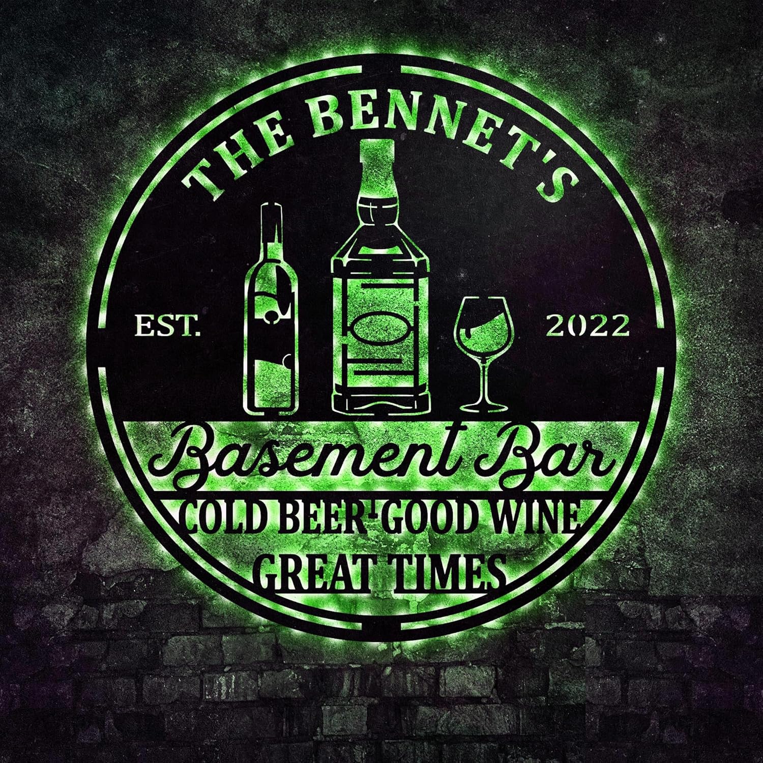 Custom Basement Bar LED Changing Lights Metal Sign, Door Wall Plaque, Rustic Bar Sign, Tasting Room Sign, Man Cave Decorations, Gift for Dad