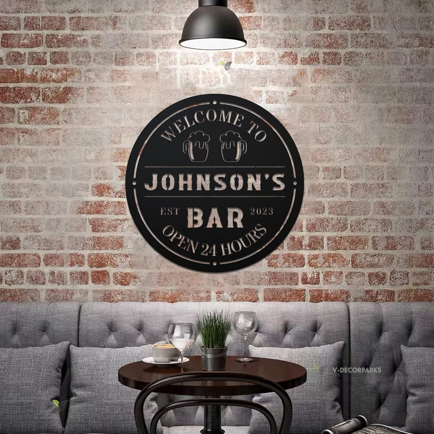 Personalized Bar LED Metal Art Sign Bar Metal Sign Custom Bar Sign Beer Bar Metal Wall Art Beer Mug Cheers Name Sign Bar Pub Decoration