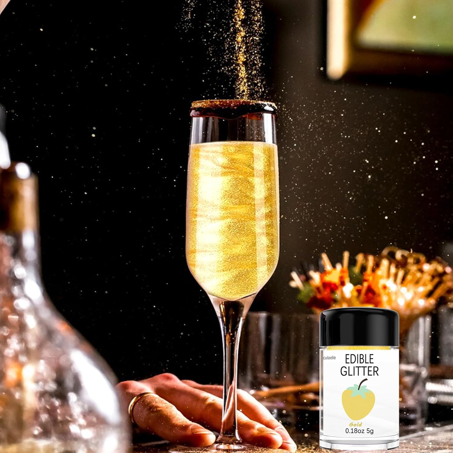 • Easy to Use: Colaele gold edible glitter for strawberries is easy to use. Beginner friendly and all you need to do is sprinkle it on! Edible glitter also can be shared to decorations or used spray gun for smoothing. Sprinkle on Sparkle and Luster to Sweets for your cake or sugar art to add luxury luster effects