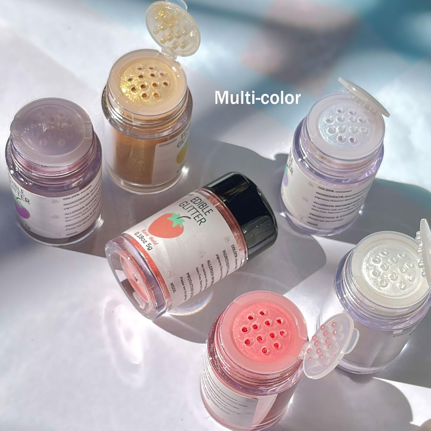 • 11 Edible Glitter Dust Colors Are Available - Includes: Iridescent Prism Powder, Rose gold, Gold, Pink, Clear white, Purple, Silver, Red, Green, Orange, Black. 5 Grams Each Jar. It is an ideal choice set for Halloween, Christmas, Wedding, and more holidays to decor.