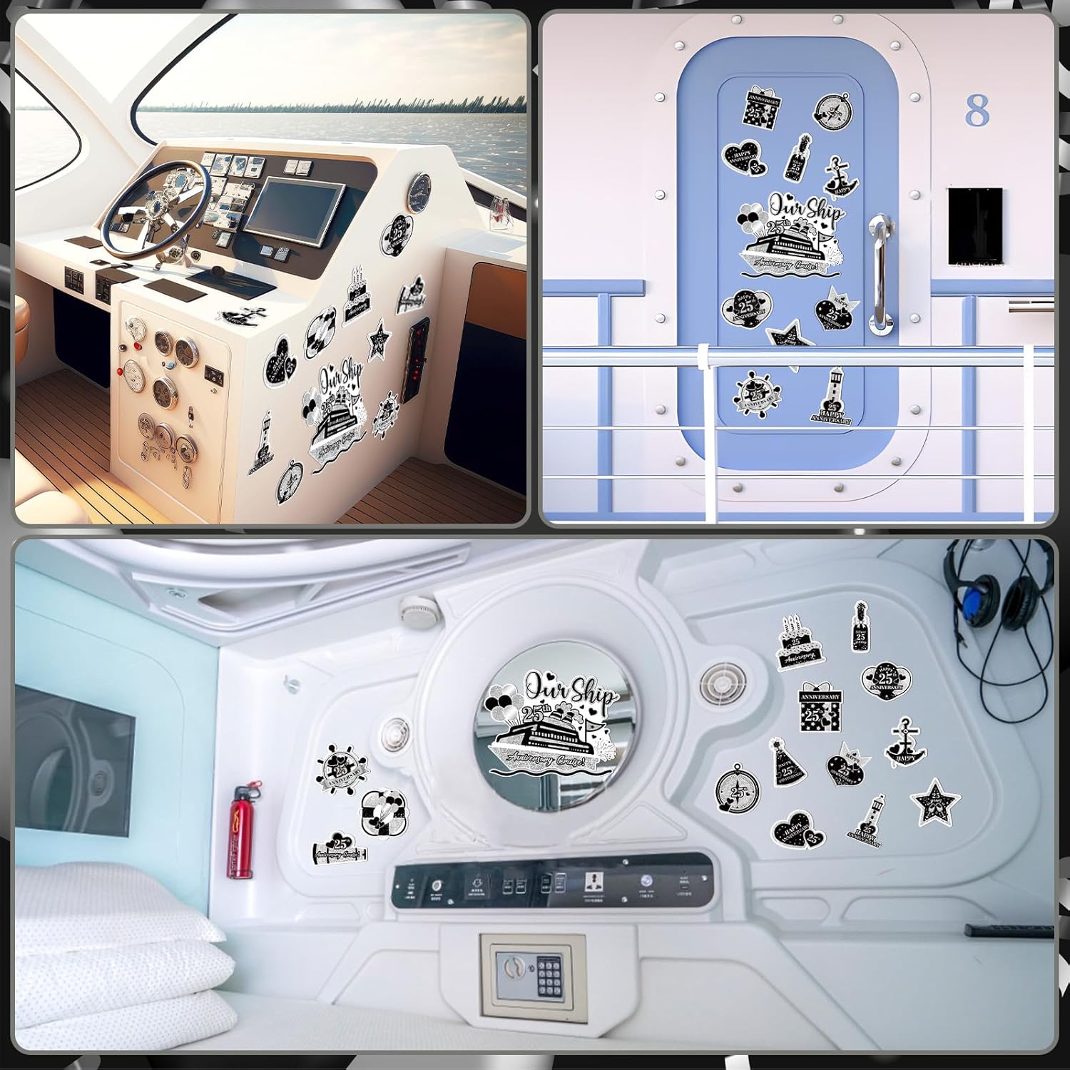 • 💌Wide Application: Because these Happy 25th Anniversary Cruise Ship Door Decors are suitable for metal and magnetic surfaces, you can stick them on garage doors, refrigerator doors, eraser boards, car doors and more, easily adding a touch of 25th wedding anniversary cheer to your home or cruise!