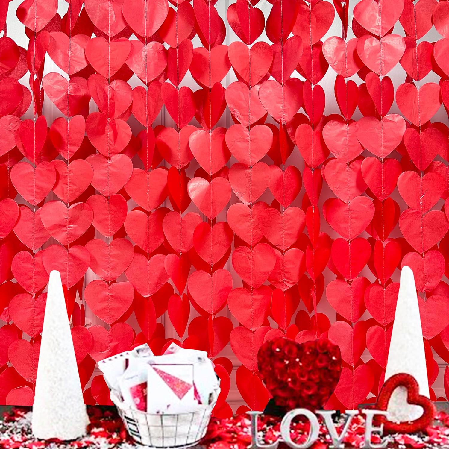 • ❤️PACKAGE CONTAINS- 16 packs of red heart party backdrop garland banner,each string is 12.8 feet with 30 pcs red heart, Total 205 feet.