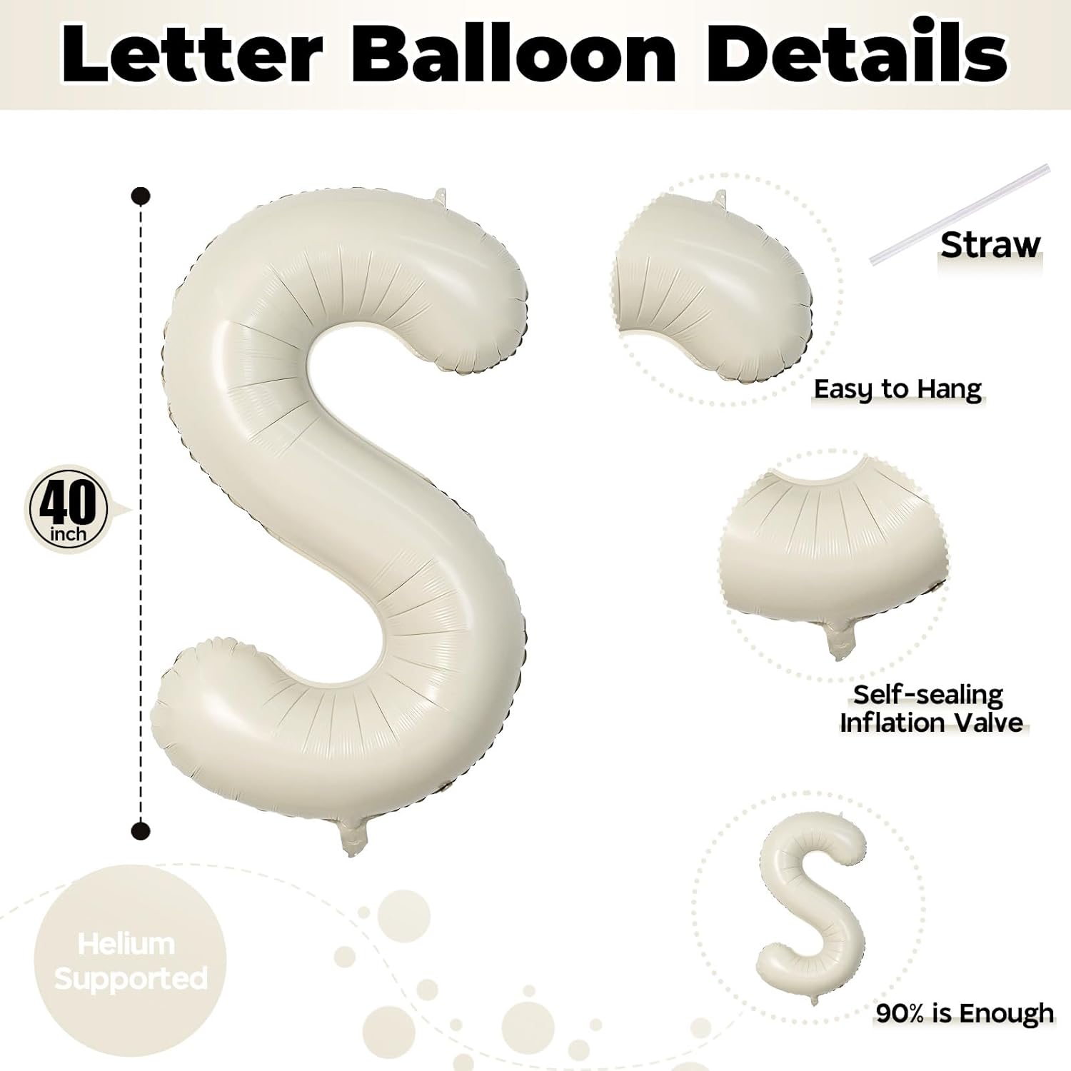 • 🎈 What You Get: Our product package includes 1pcs 40 inch "S" letter foil cream white balloon and 1pcs convenient straw for inflate. You can choose any big letter balloons to combine and customize the word you want to form. Make your party more unique and meaningful.
