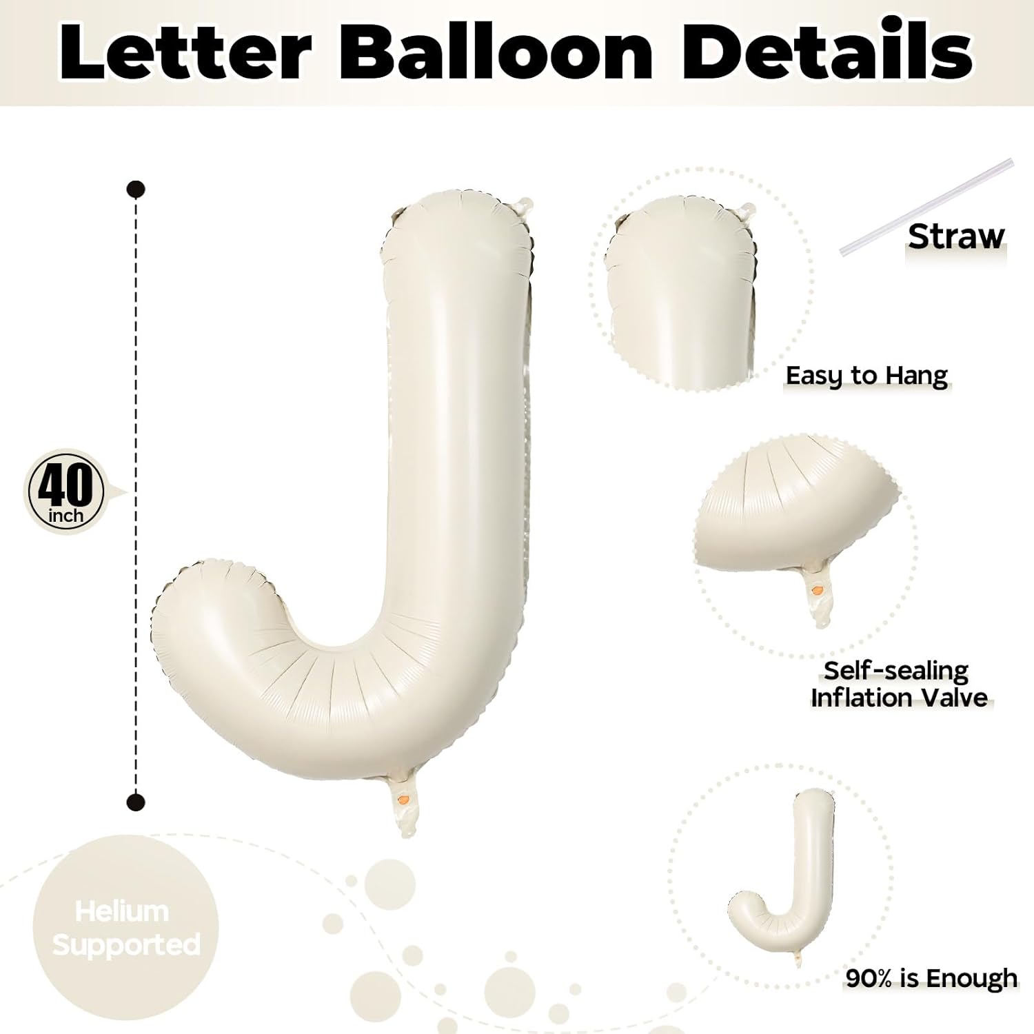 40 Inch Cream Letter Balloon, Big Alphabet J Foil Word Beige, Large Inflatable Name White Decor, Mylar Helium Custom for Women Birthday Party Decoration