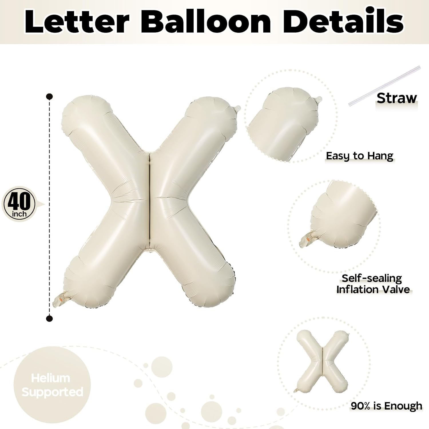 Giant Alphabet X Foil Name Balloons, Cream Ivory White Inflatable Word X Letters for Birthday Decor, 40 Inch Mylar Beige A-Z Custom Letter for Girls Baby Shower Party Decoration Supplies