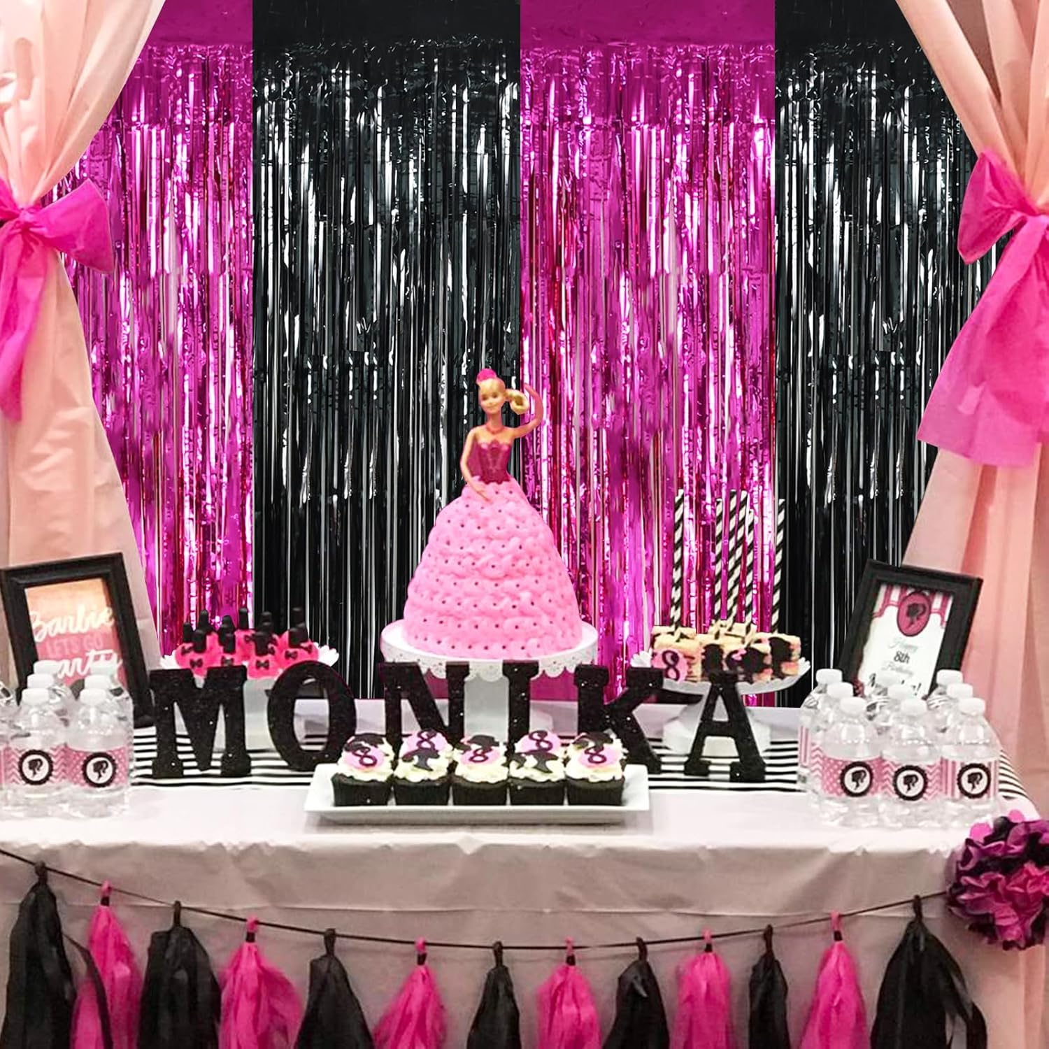 • 【Best Decorations】Combine the shiny tinsel fringe curtain and the balloons, banner to turn your home into the party place. All your friends and your family will be surprised by your Barbie style fringe curtains party decorations!