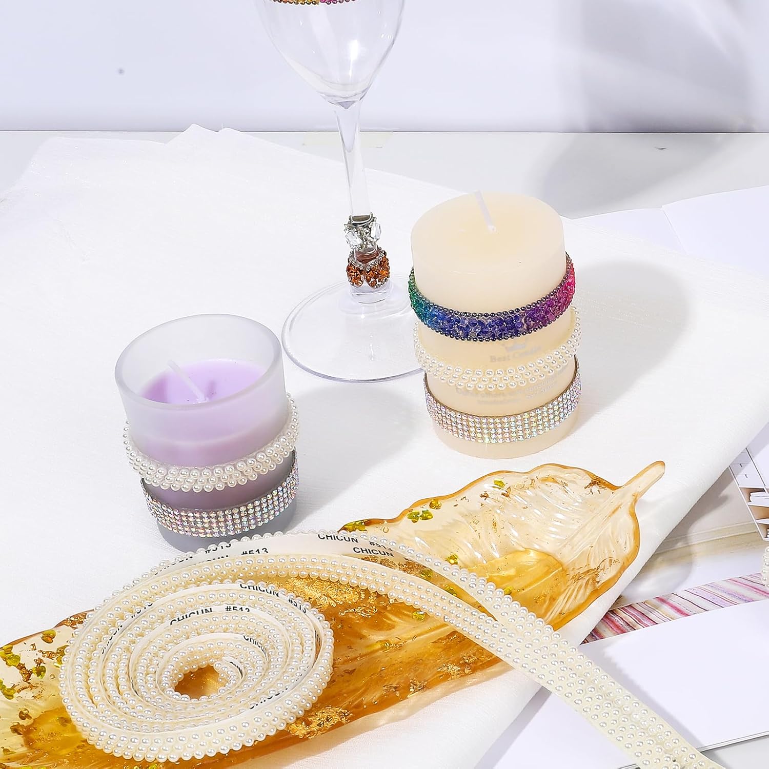 • Wide Applications: The bling pearls sticker strip is suitable for many DIY decorations, mirrors, candles, vases, photo frames, costumes, home decor, offices, gardens, cars, personalized phone cases, jewelry boxes, and other places.