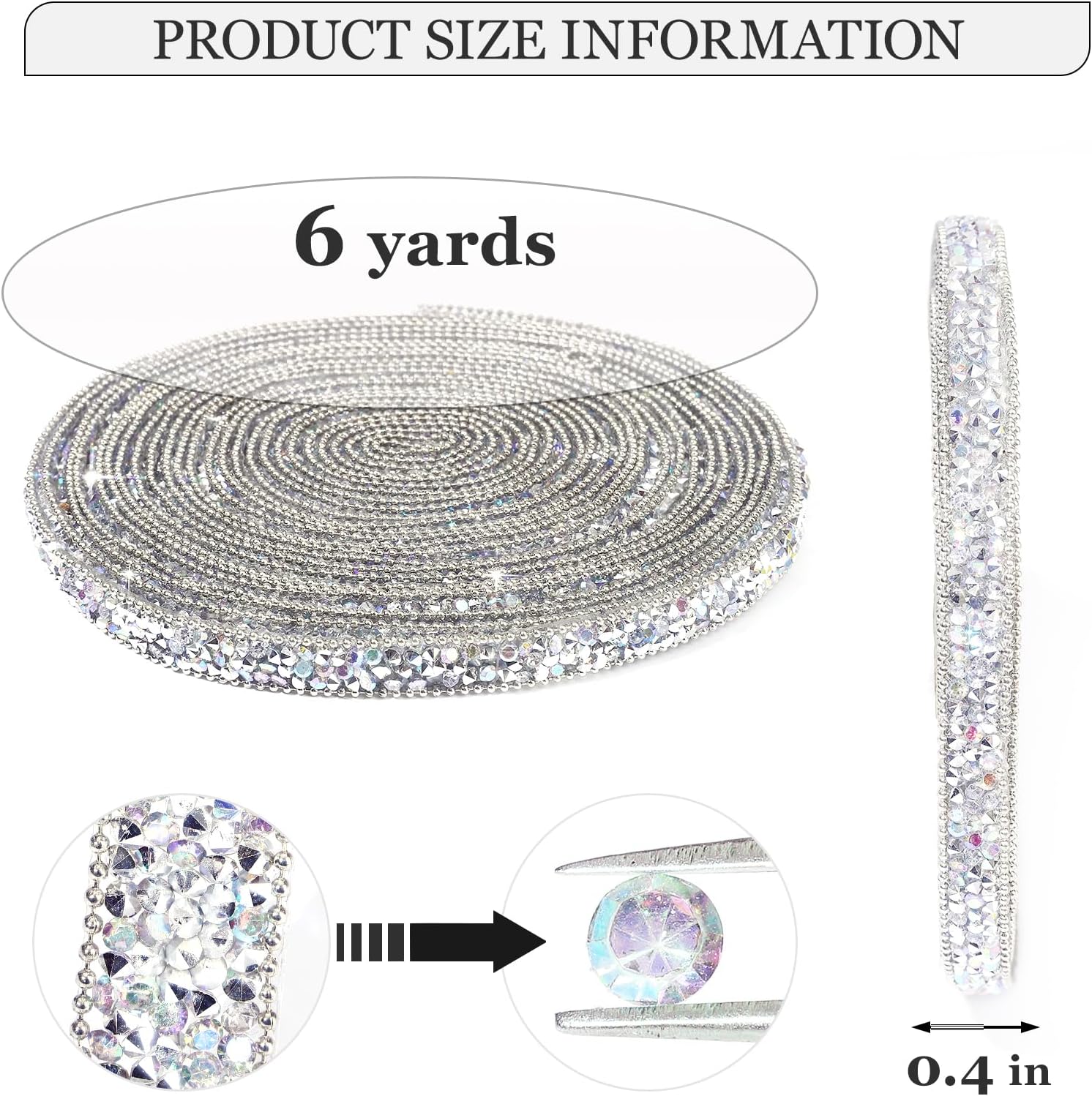 • SilverAB Rhinestone Ribbon: 1 roll of self-adhesive rhinestone ribbon Sticker, approx 6 yards in length, 1cm/0.4inch in width. (PACKAGE CONTENT)