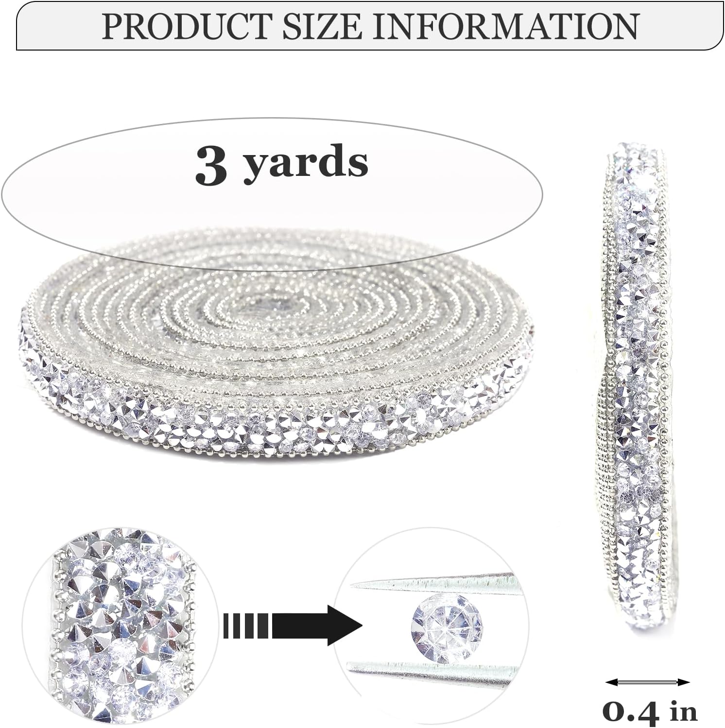 • Silver Rhinestone Ribbon: 1 roll of self-adhesive rhinestone ribbon Sticker, approx 3 yards in length, 1cm/0.4inch in width. (PACKAGE CONTENT)