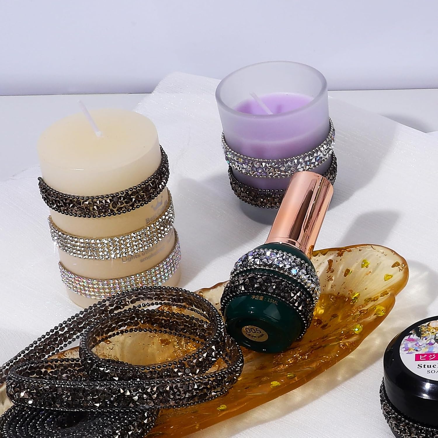 • Wide Applications: The bling rhinestone sticker strip is suitable for many DIY decorations, mirrors, candles, vases, photo frames, costumes, home decor, offices, gardens, cars, personalized phone cases, jewelry boxes, and other places.