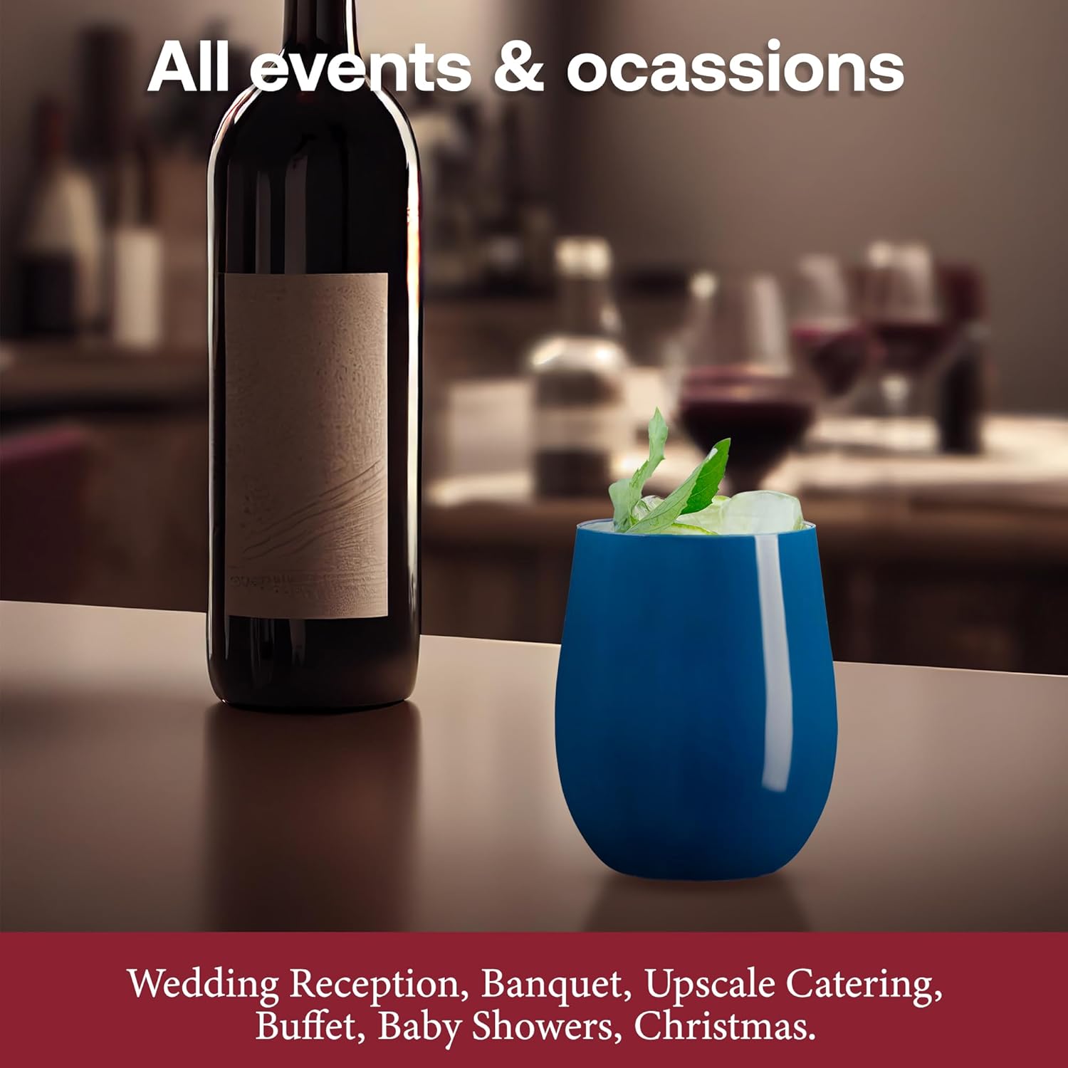 • STYLISH NAVY STEMLESS DESIGN – These 12 oz stemless wine glasses in an elegant navy add a unique touch to weddings, parties, and special events, perfect for creating a modern, upscale look.