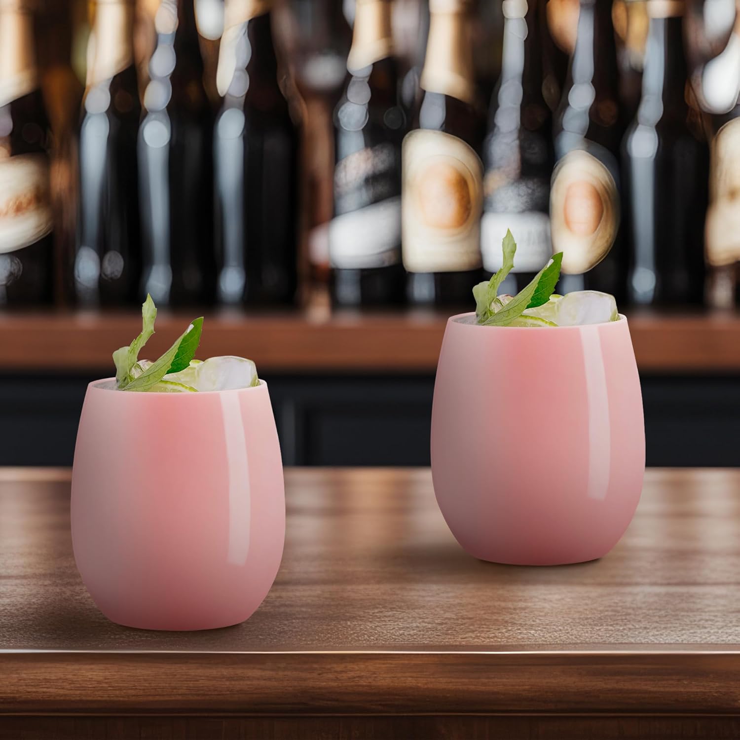 • ELEGANT PINK STEMLESS DESIGN – These 12 oz stemless wine glasses in a chic pink color bring a stylish touch to weddings, birthdays, and special celebrations, adding charm to any occasion.