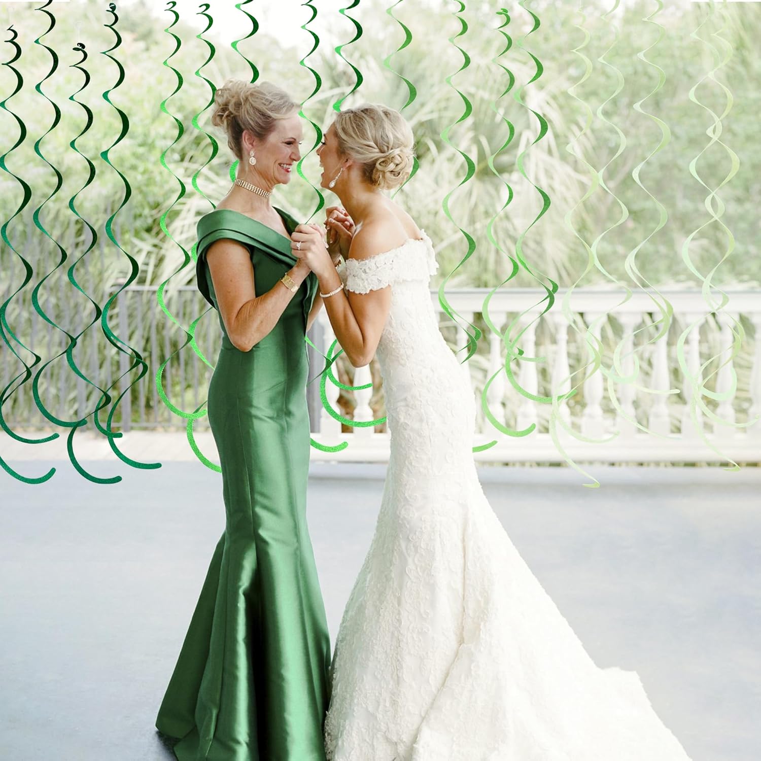 36Pcs Green Hanging Swirl Decorations Ombre Green Felt Swirl Streamer Spiral Ceiling Garland for Spring Summer Birthday Wedding Baby Shower Graduation Christmas St Patrick's day Holiday Party Supplies