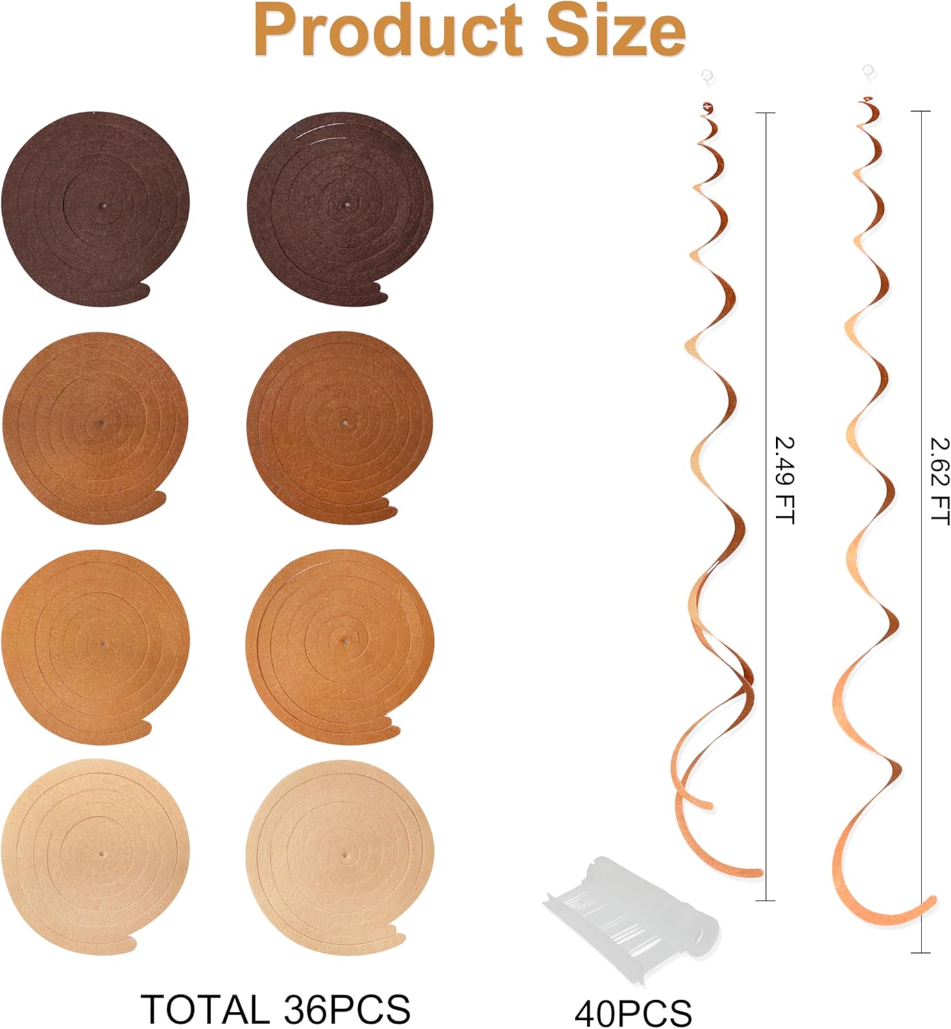 • 🤎High Quality - Our felt swirl hanging decorations kit are made of high-quality felt in gradient brown color(Coffee.Brown.Khaki.Beige),Soft texture and safer than PVC swirls.durable and reusable.and the color is more brilliant than general PVC whirls.