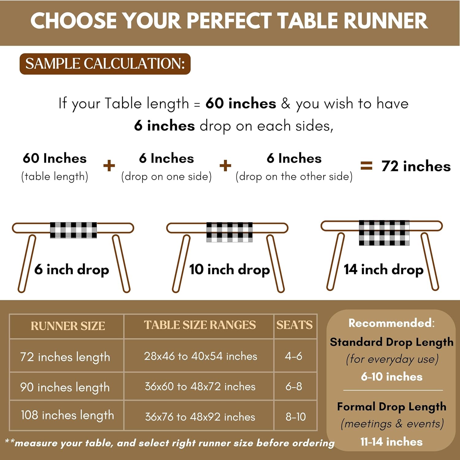 • PERFECT FOR GATHERINGS: Whether it’s a casual family dinner, birthday celebration, or thanksgiving feast, our buffalo checked runners enhance the ambiance.