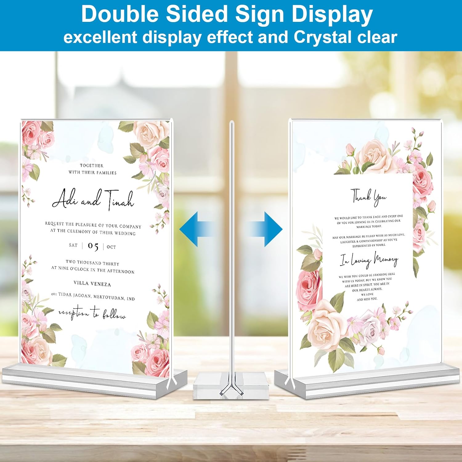 • 【Double Sided Sign Stand】This 16Pack acrylic sign holder 4x6 is designed with a vertical double sided stand. Typically, people prefer this double-sided holder rather than slant-back ones. Because these double-sided holders allow you to display on both sides, but slant back ones, which only allow you to display on one side