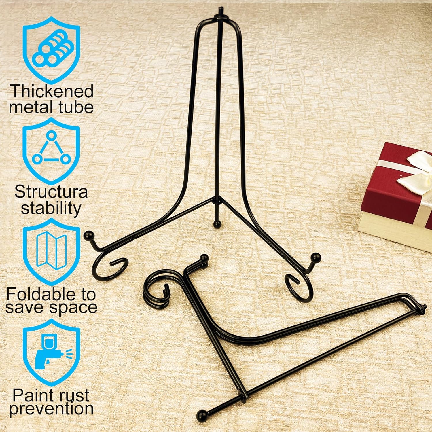 • Exquisite folding design: Mini easel stand is exquisitely designed to fold flat for easy carrying and easy storage, and take up less space when not in use
