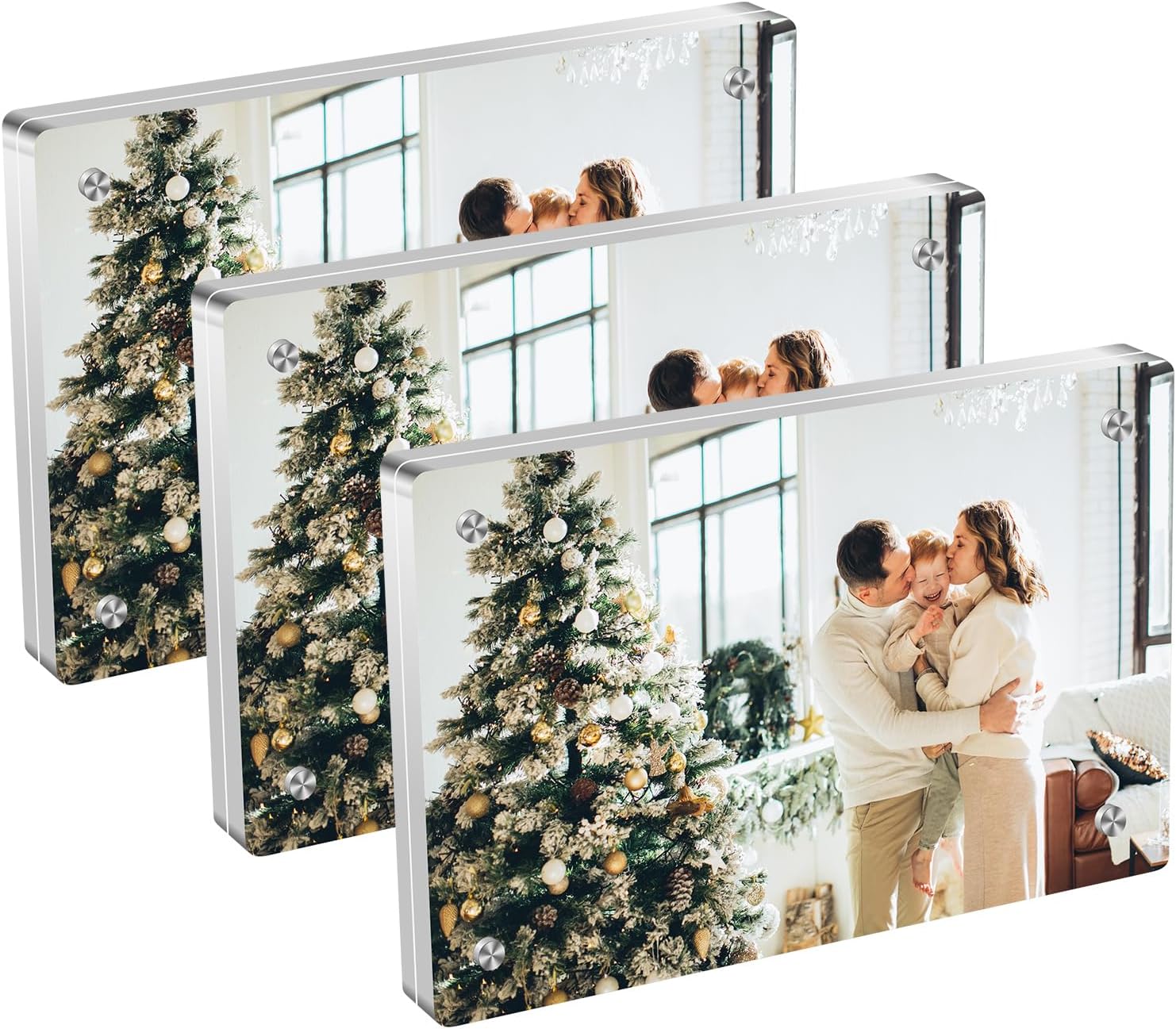 Acrylic Magnetic Photo Frame, 3x5 Inch Double-sided Magnetic Photo Frame, Tabletop Frameless Postcard Display (3-Pack)