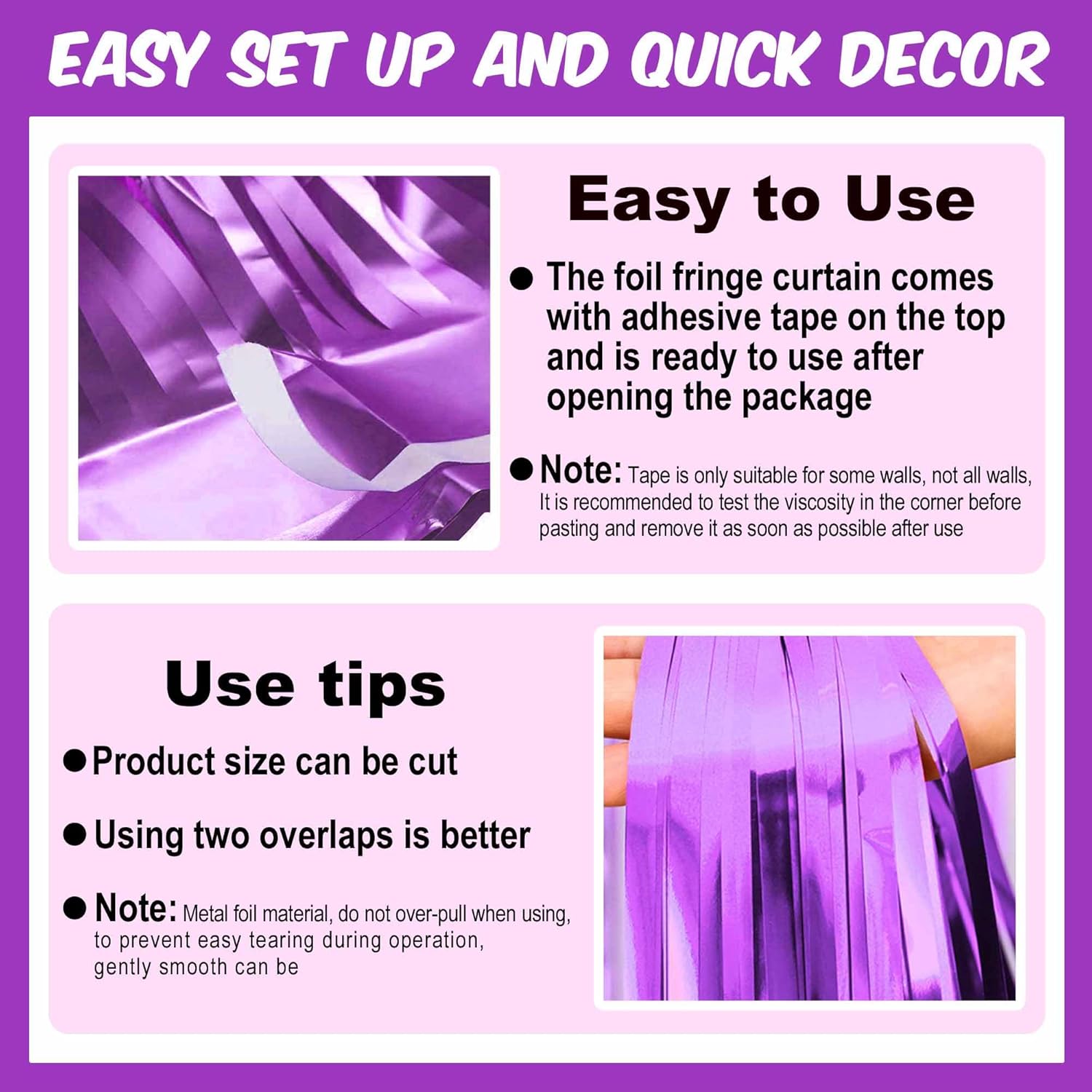 • Easy to Use: The tinsel foil fringe streamers curtain backdrop comes with double sided tape on the top, gently peel plastic strip off and it would be very easy to paste on smooth surfaces such as wall, window, table, door or anywhere you like