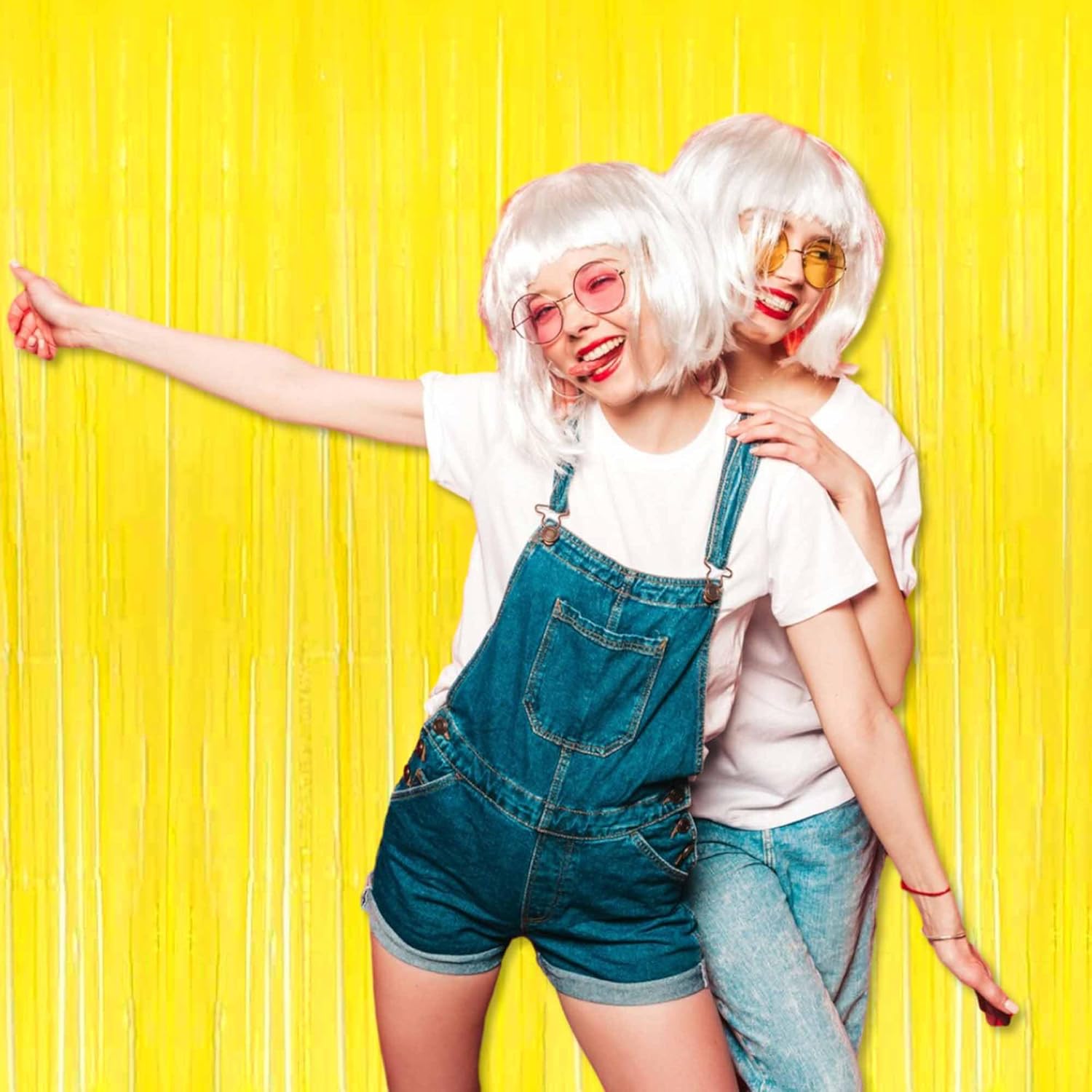 3 Pack Macaron Yellow Foil Fringe Curtains Backdrop, 3.28 x 9.8 Ft Metallic Streamers Tinsel Curtains Background for Photo Booth, Birthday, Halloween, Christmas, New Year Party Decorations