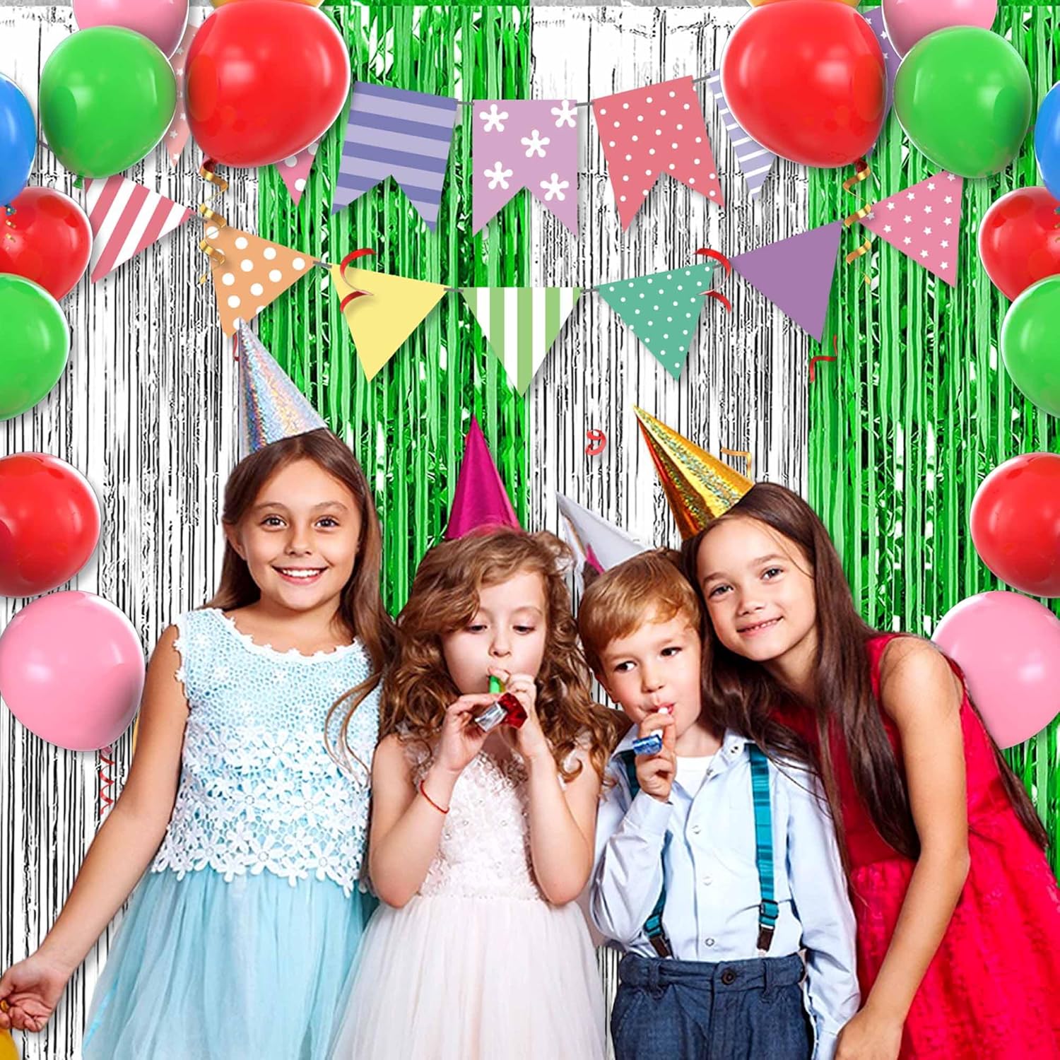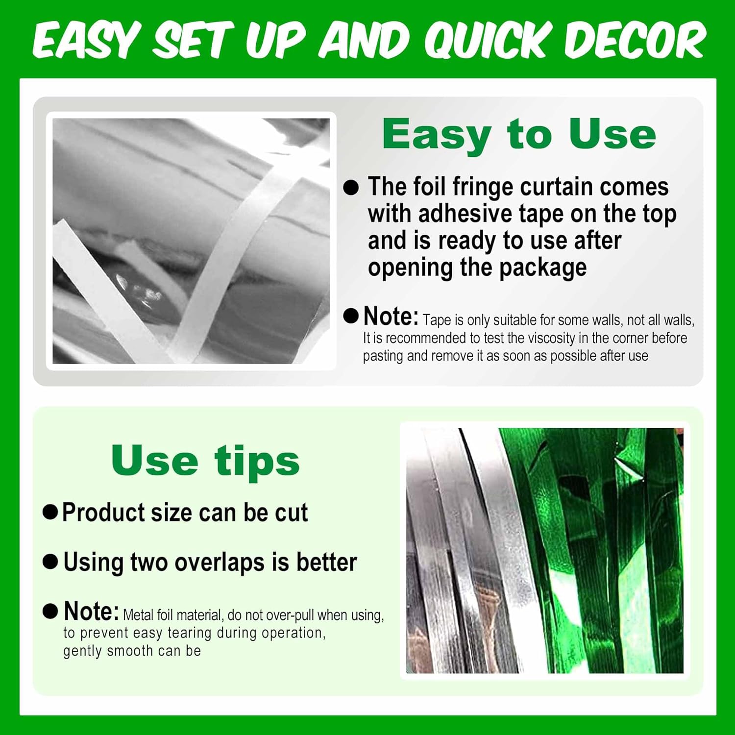 6 Pack Silver Green Foil Fringe Curtains Backdrop, 3.28 x 8.2 Ft Metallic Streamers Tinsel Curtains Background for Photo Booth, Birthday, Weddings, Carnivals, Graduation, Themed Party Decorations