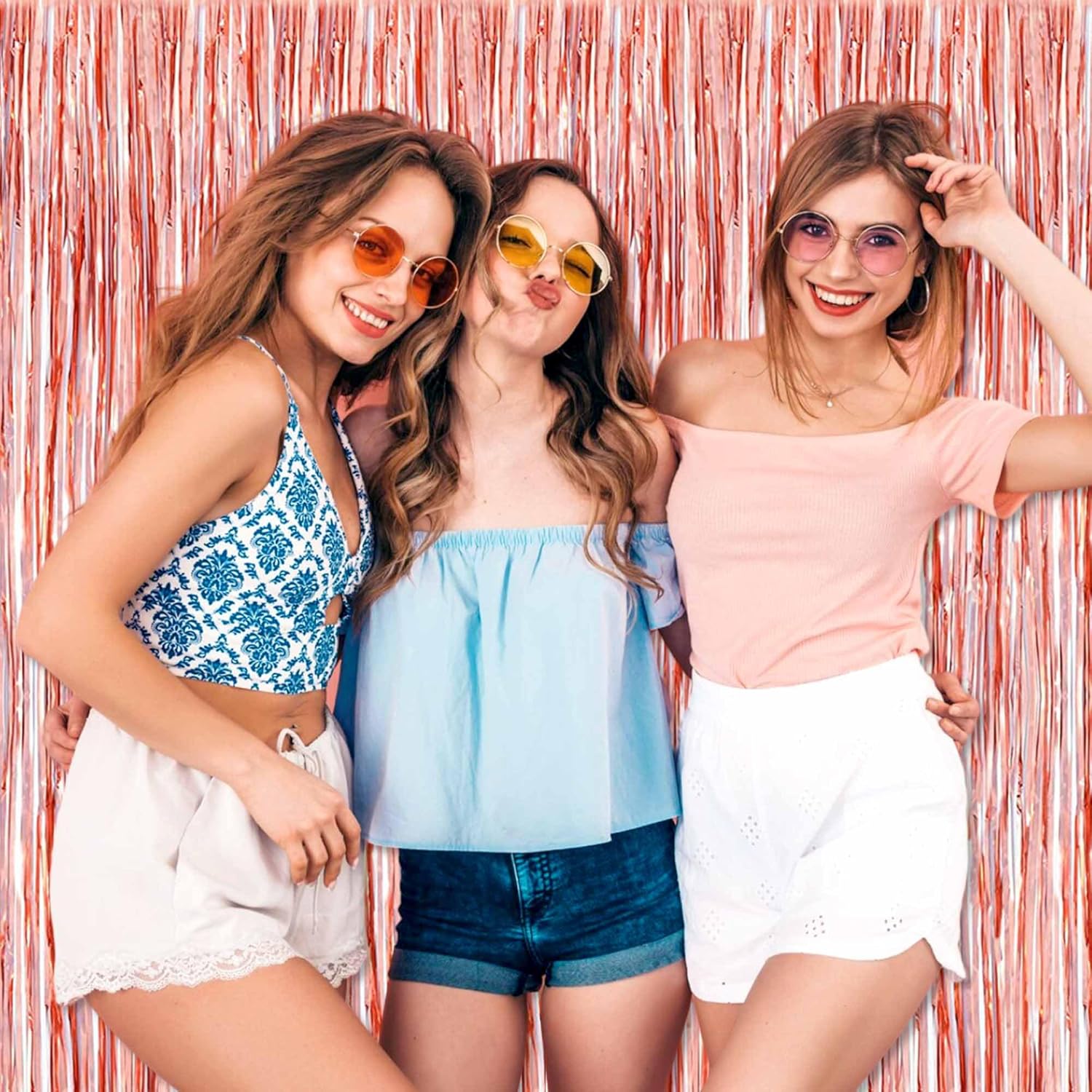 6 Pack Rose Gold Foil Fringe Curtains Backdrop, 3.28 x 8.2 Ft Metallic Streamers Tinsel Curtains Background for Photo Booth, Birthday, Weddings, Carnivals, Graduation, Themed Party Decorations