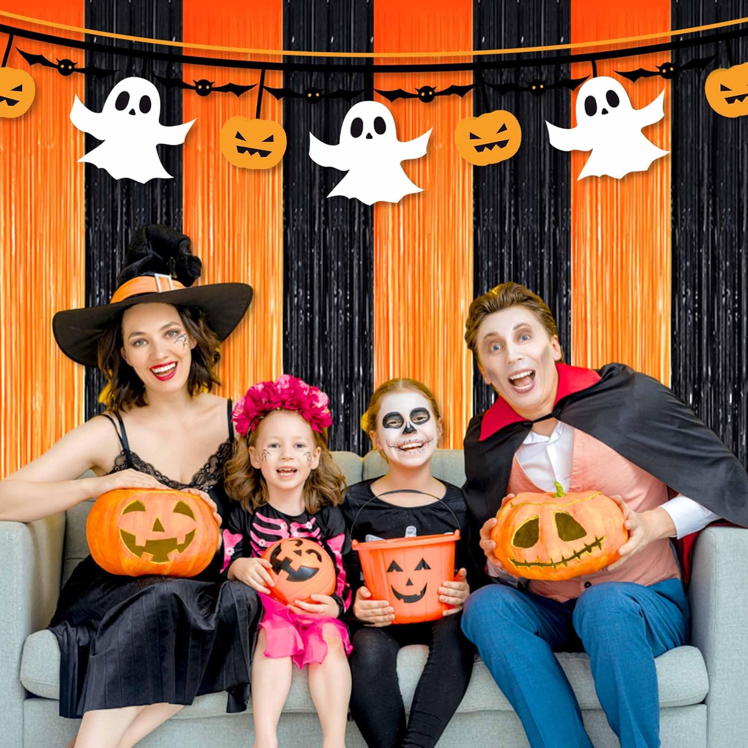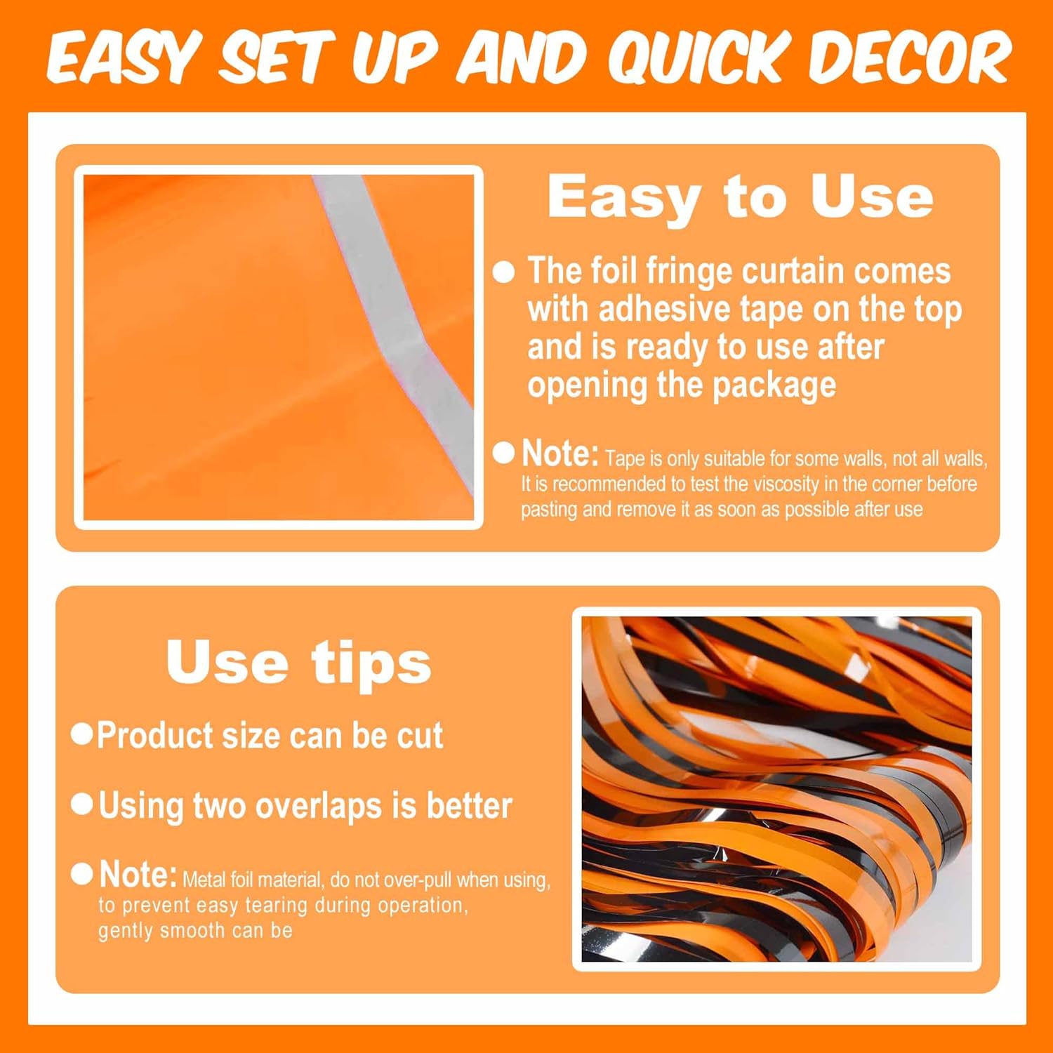 6 Pack Black Orange Foil Fringe Curtains Backdrop, 3.28 x 8.2 Ft Metallic Streamers Tinsel Curtains Background for Photo Booth, Birthday, Weddings, Carnivals, Graduation, Themed Party Decorations