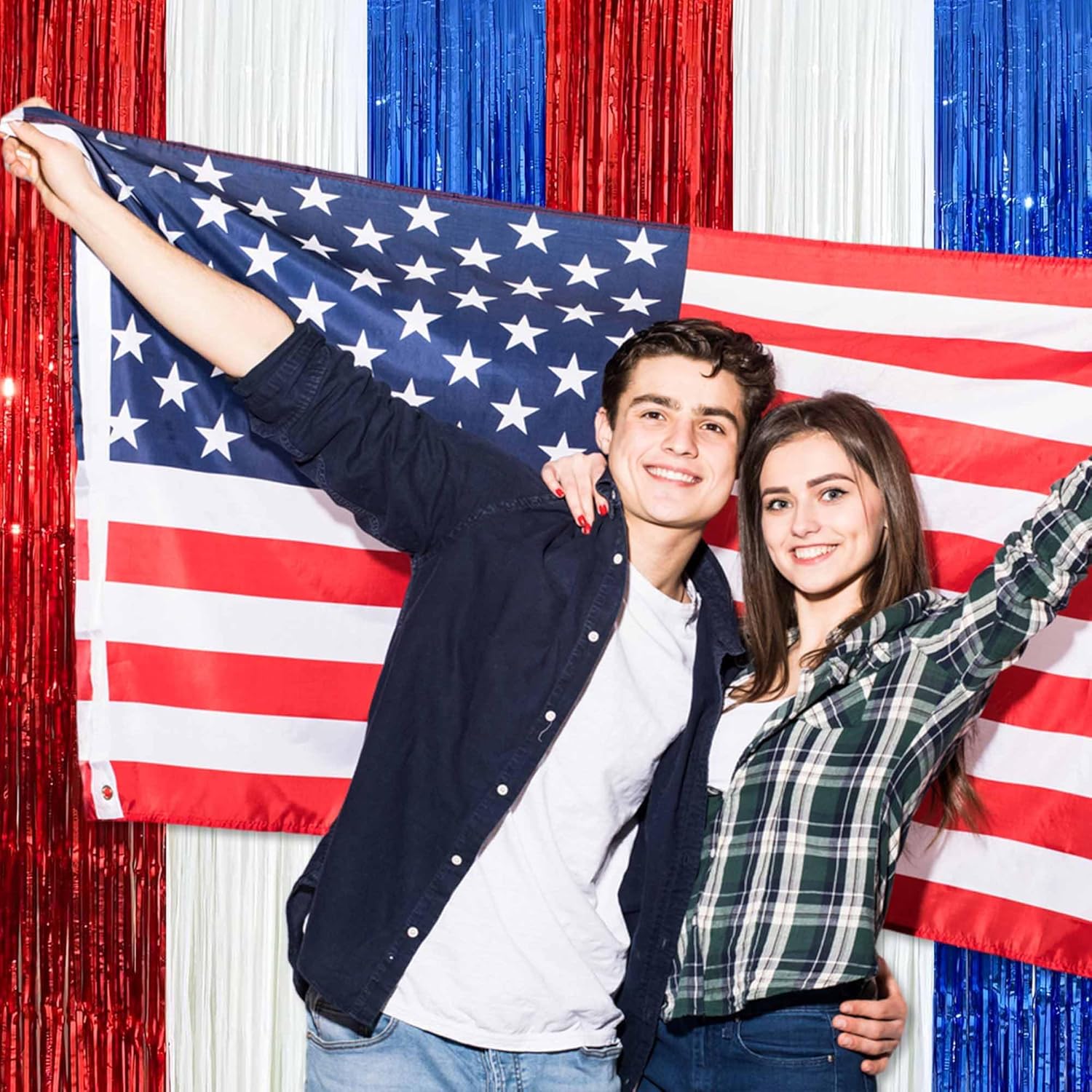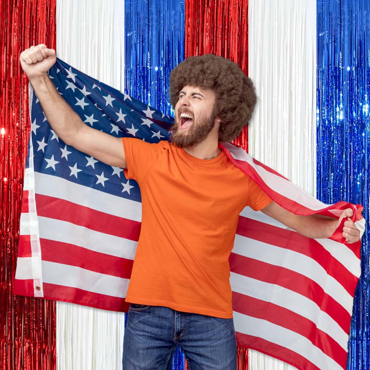 6 Pack White Blue Red Foil Fringe Curtains Backdrop, 3.28 x 8.2 Ft Metallic Streamers Tinsel Curtains Background for Photo Booth, Birthday, Weddings, Carnivals, Graduation, Themed Party Decorations