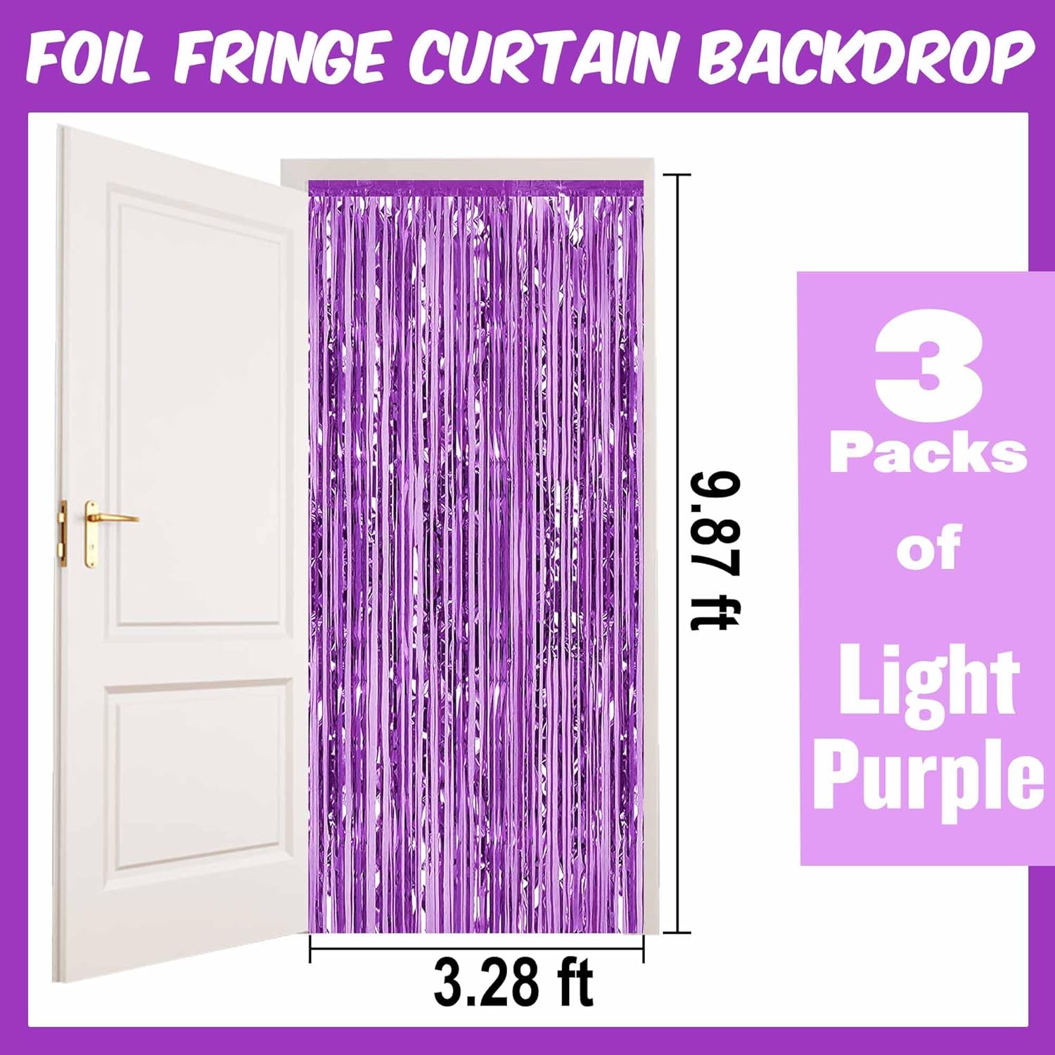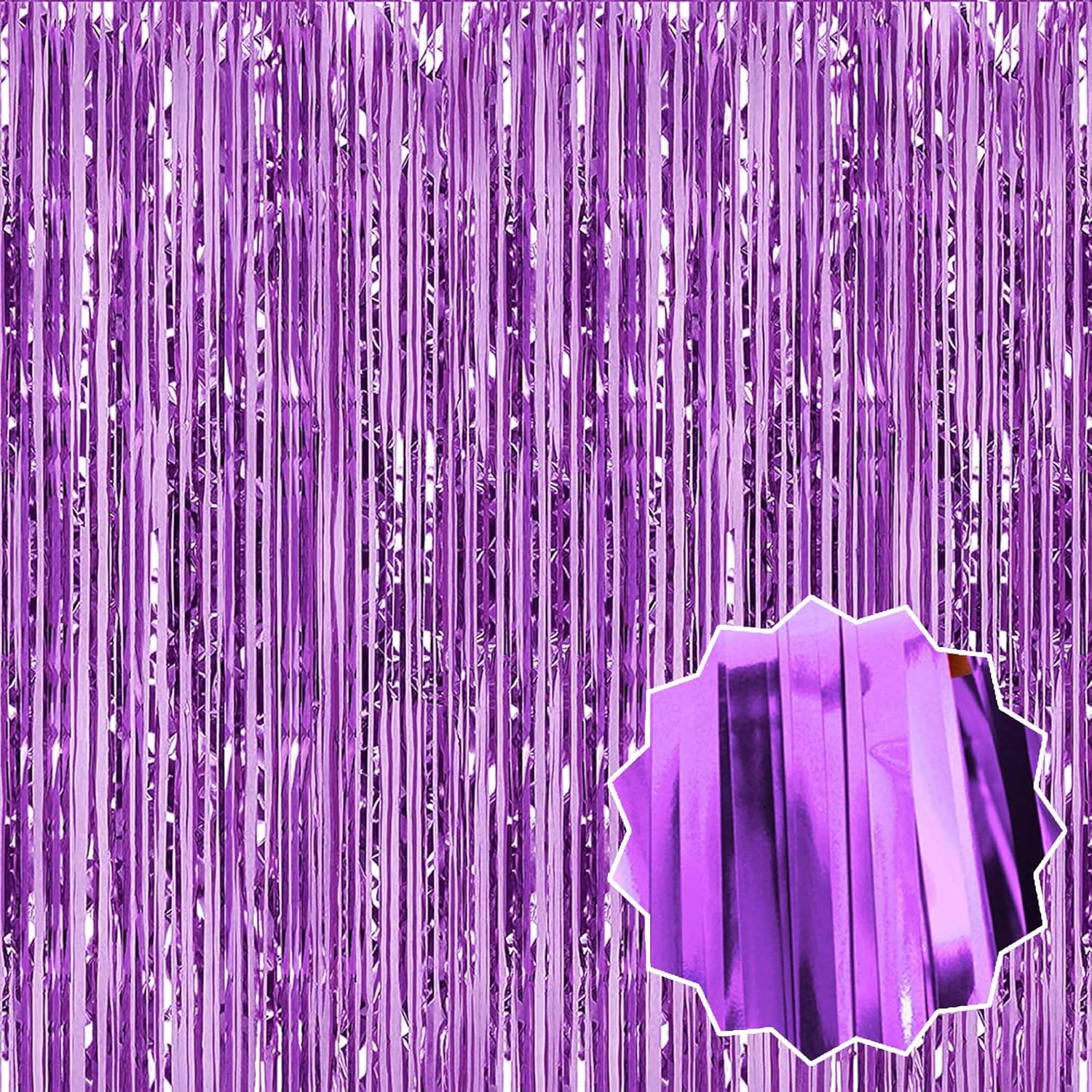 3 Pack Light Purple Foil Fringe Curtains Backdrop, 3.28 x 9.8 Ft Metallic Streamers Tinsel Curtains Background for Photo Booth, Birthday, Halloween, Christmas, Thanksgiving, New Year Party Decorations