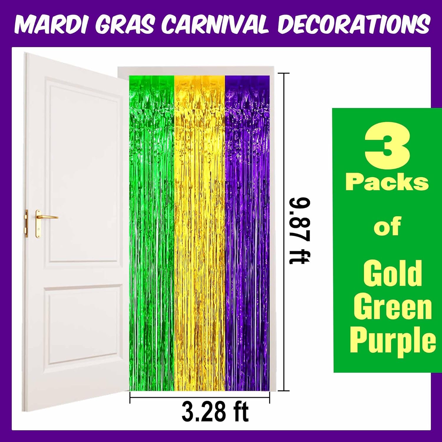 • Package and size: 3 Packs Foil Fringe Streamers Curtain Backdrop. The size is 3.28 x 9.8 feet. It's long, enough to fit any party occasion. Made of metallic foil material, shiny and creating dazzling effects, adding luxury and visual impact to the party