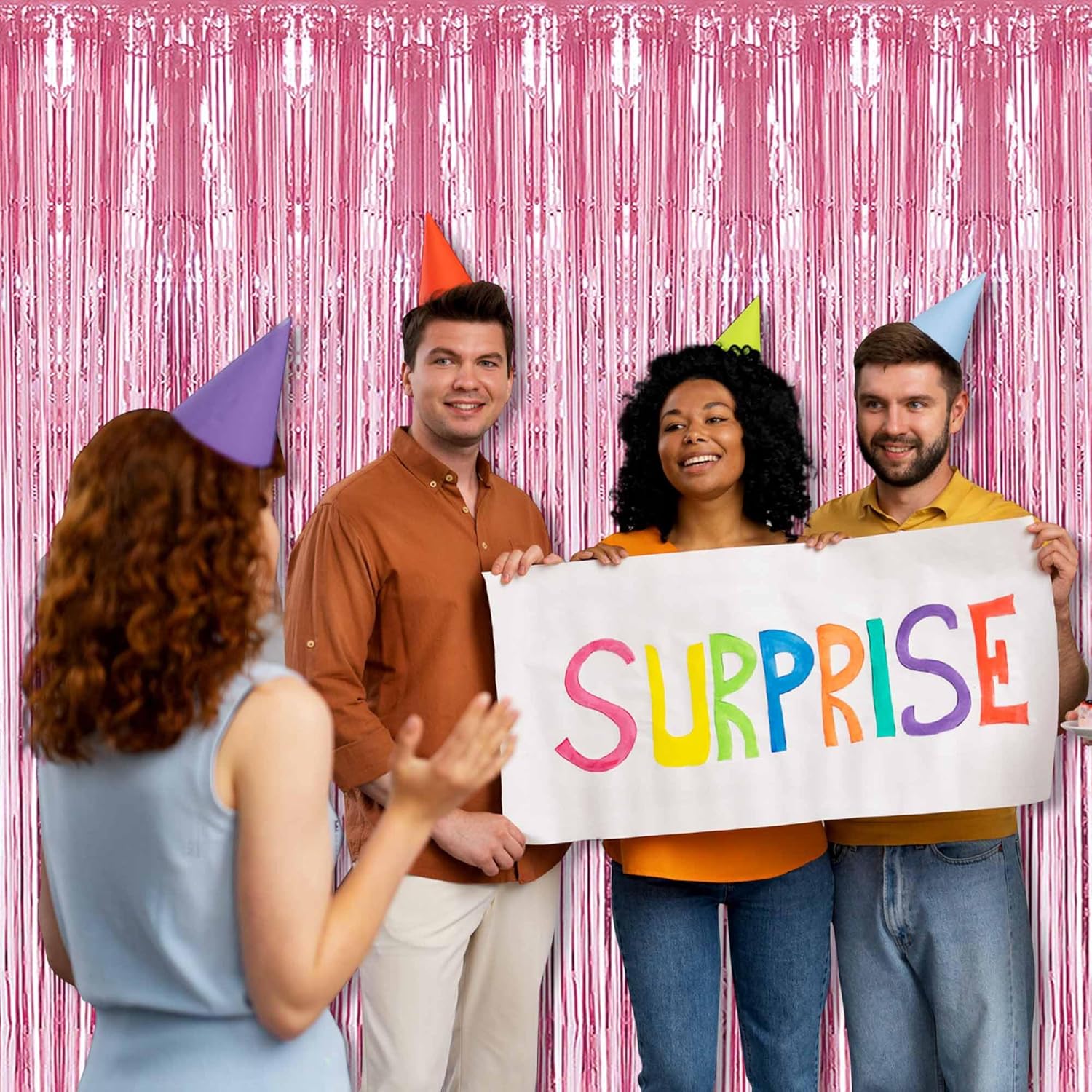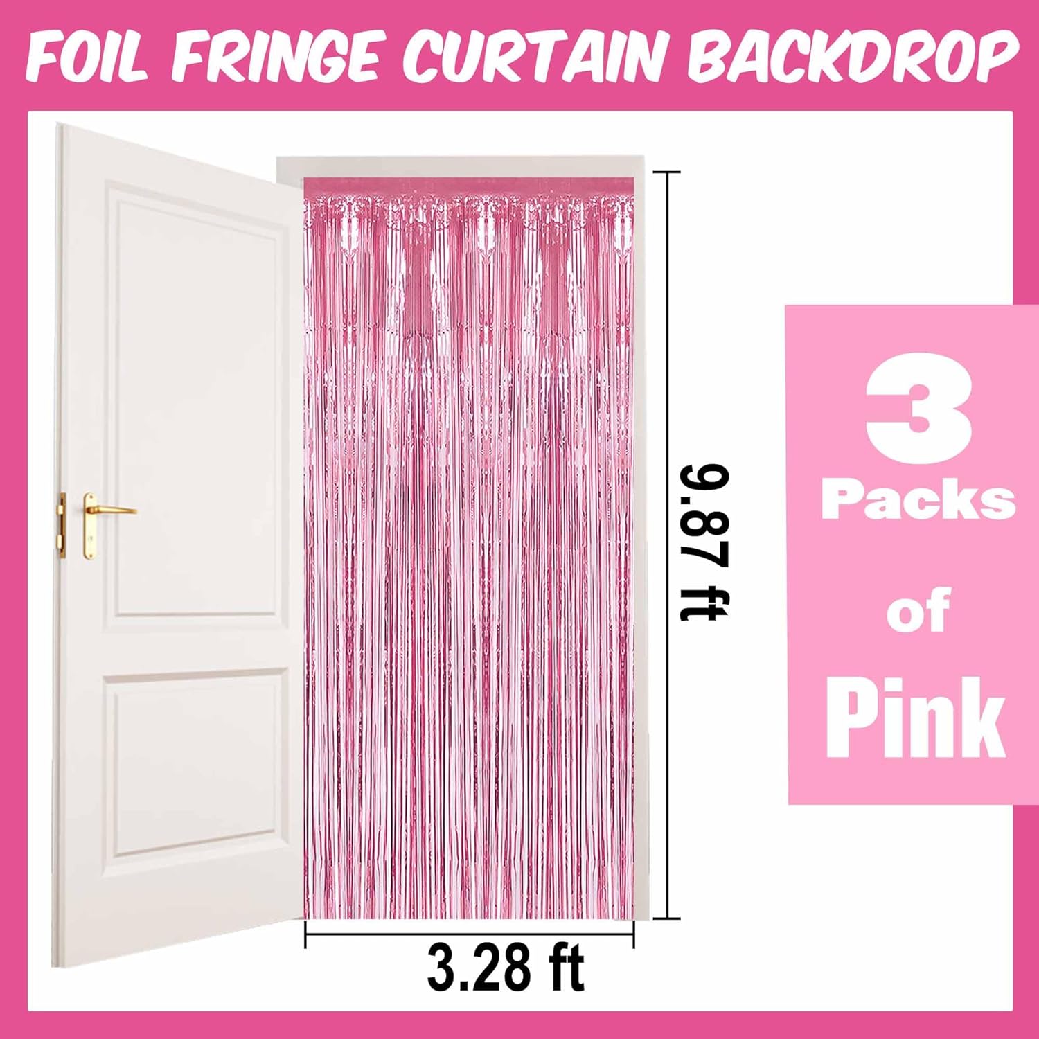 3 Pack Pink Foil Fringe Curtains Backdrop, 3.28 x 9.8 Ft Metallic Streamers Tinsel Curtains Background for Photo Booth, Birthday, Halloween, Christmas, Thanksgiving, New Year Party Decorations