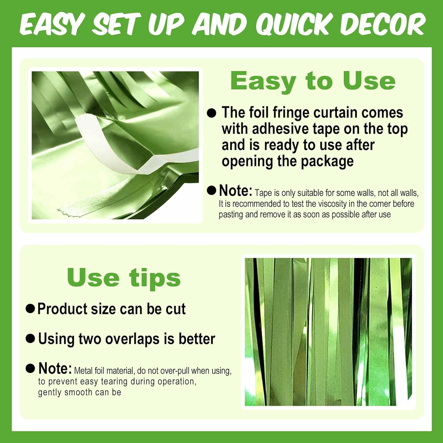 3 Pack Light Green Foil Fringe Curtains Backdrop, 3.28 x 9.8 Ft Metallic Streamers Tinsel Curtains Background for Photo Booth, Birthday, Halloween, Christmas, Thanksgiving, New Year Party Decorations