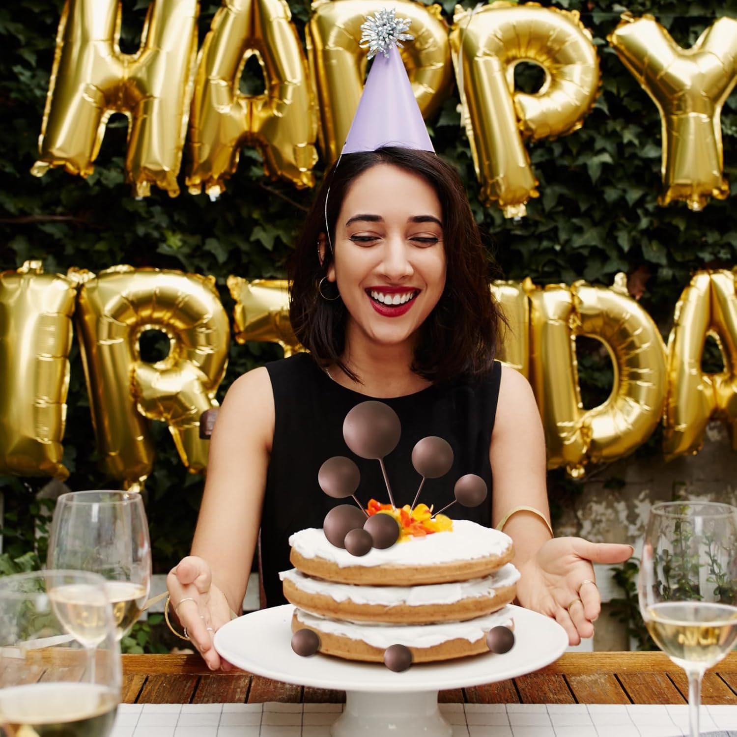 • Material: these ball decorations for cake are made of foam and wire. Safe to decorate food at room temperature, such as cake and dessert decorating use, or cupcakes, fruits, cheese and any dish and appetizer you want to decorate.